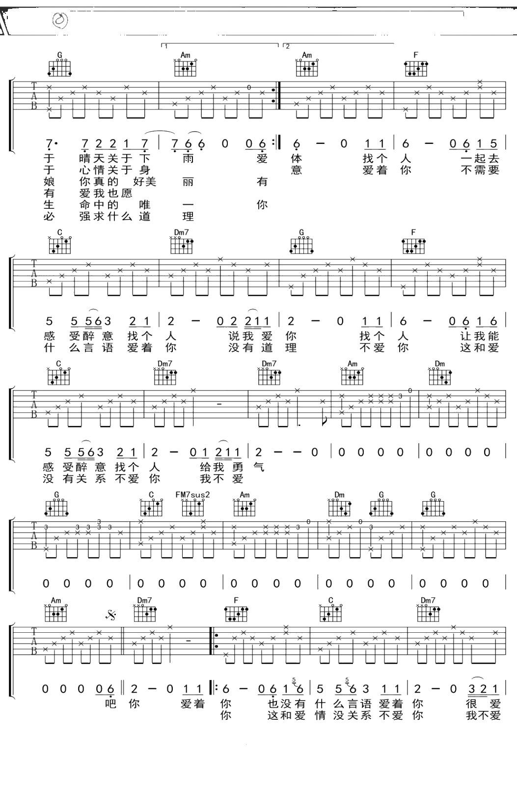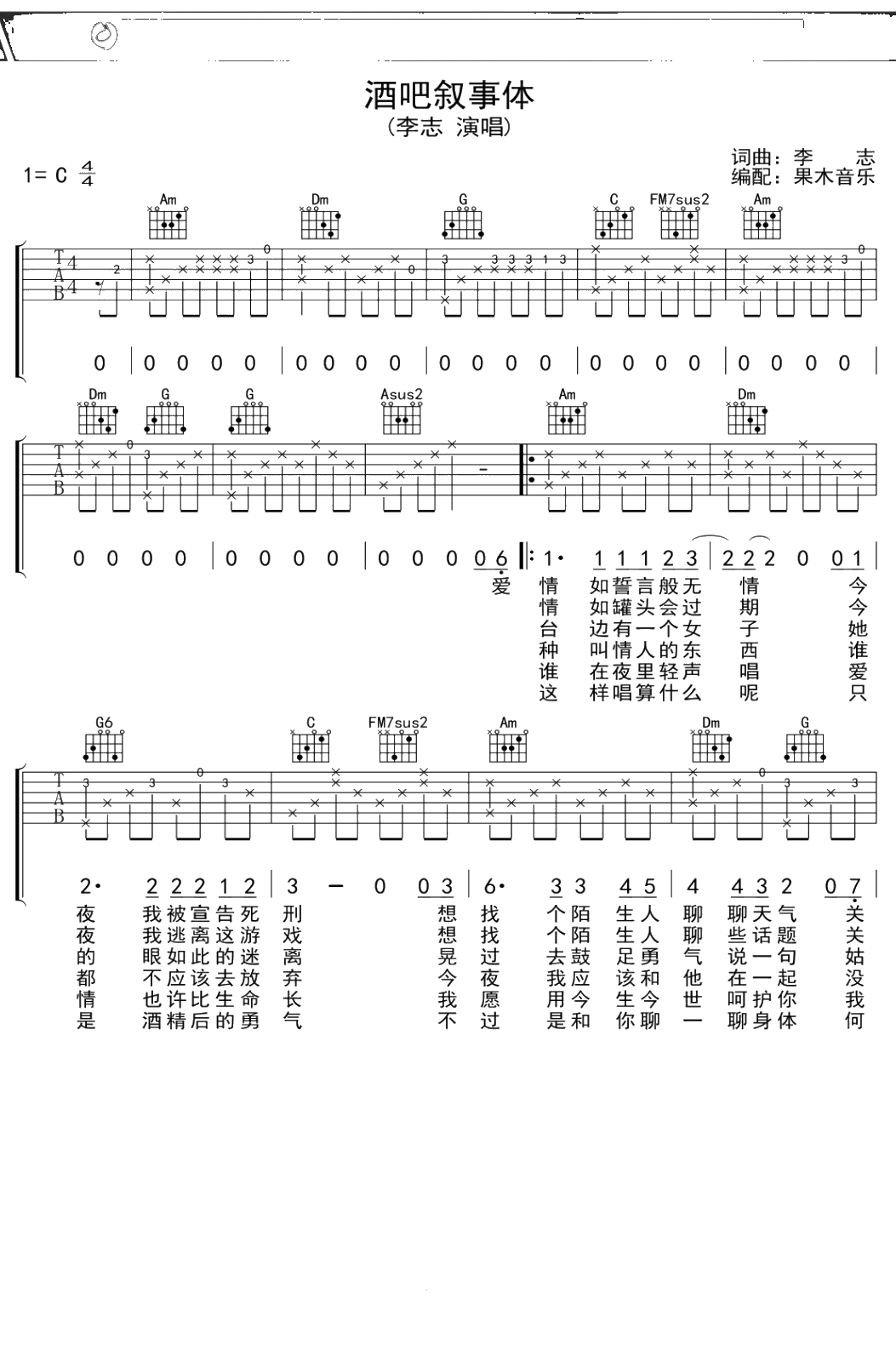 李志《酒吧叙事体》吉他谱 C调弹唱六线谱吉他谱