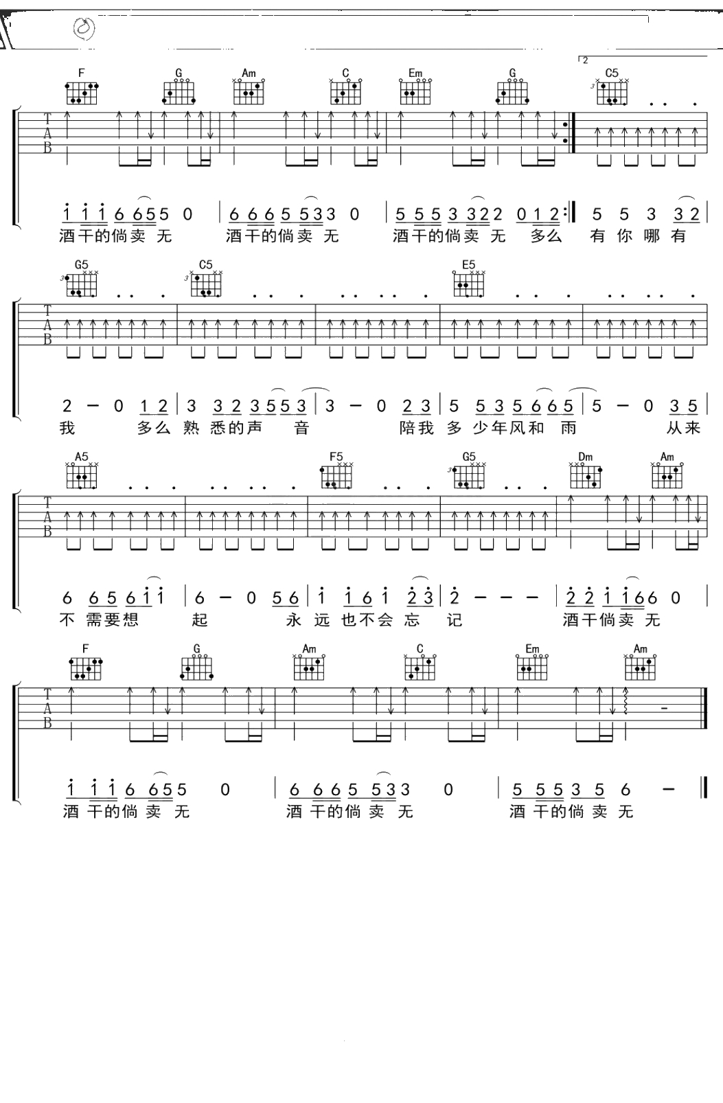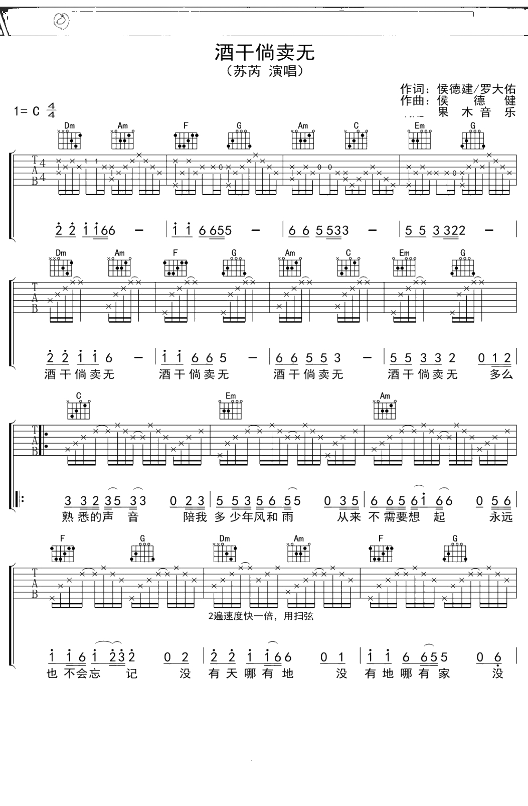 苏芮《酒干倘卖无》吉他谱 C调弹唱六线谱吉他谱
