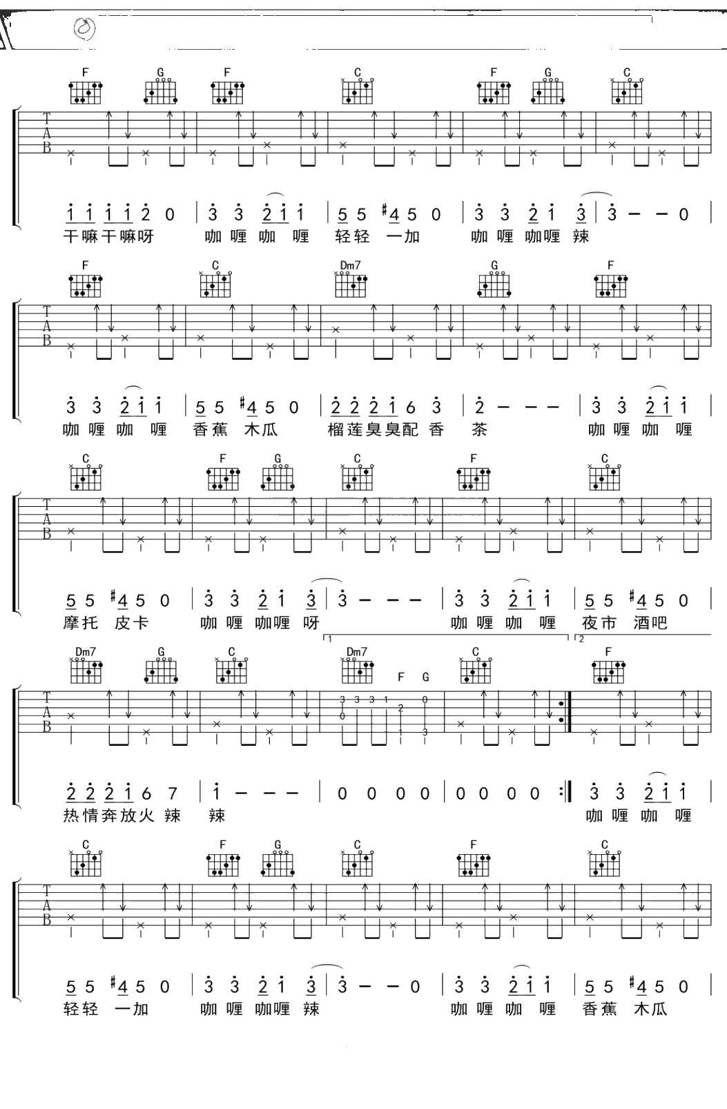 牛奶咖啡《咖喱咖喱》吉他谱 F调弹唱六线谱