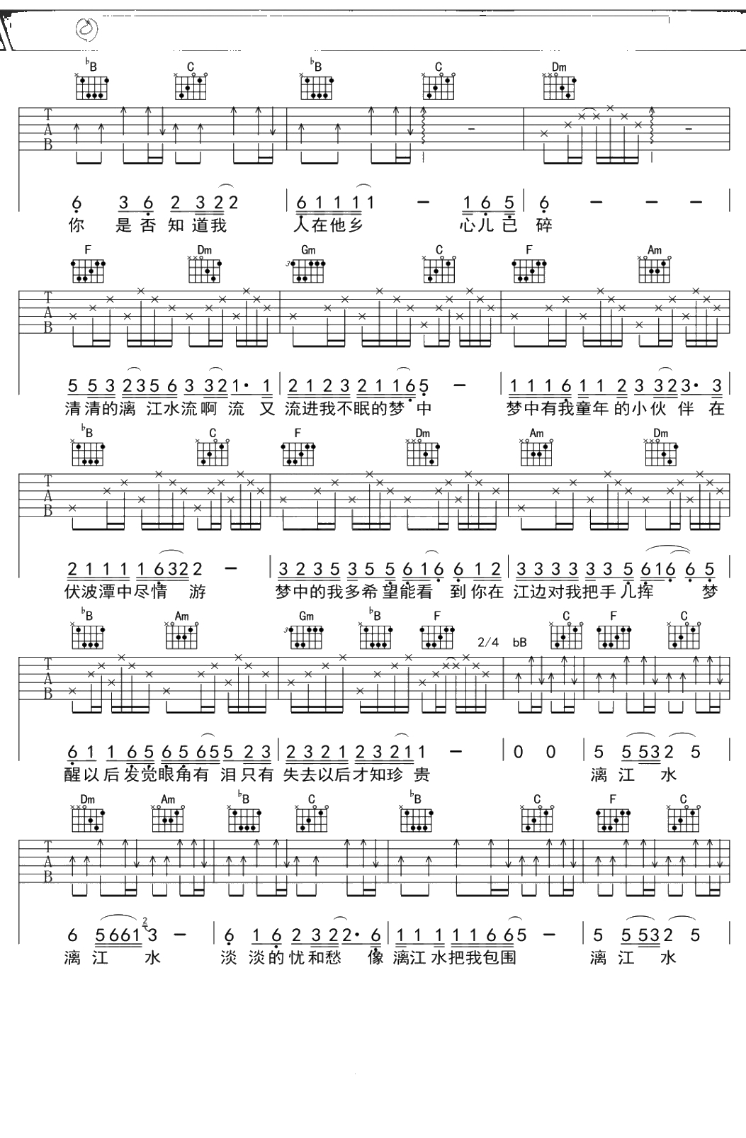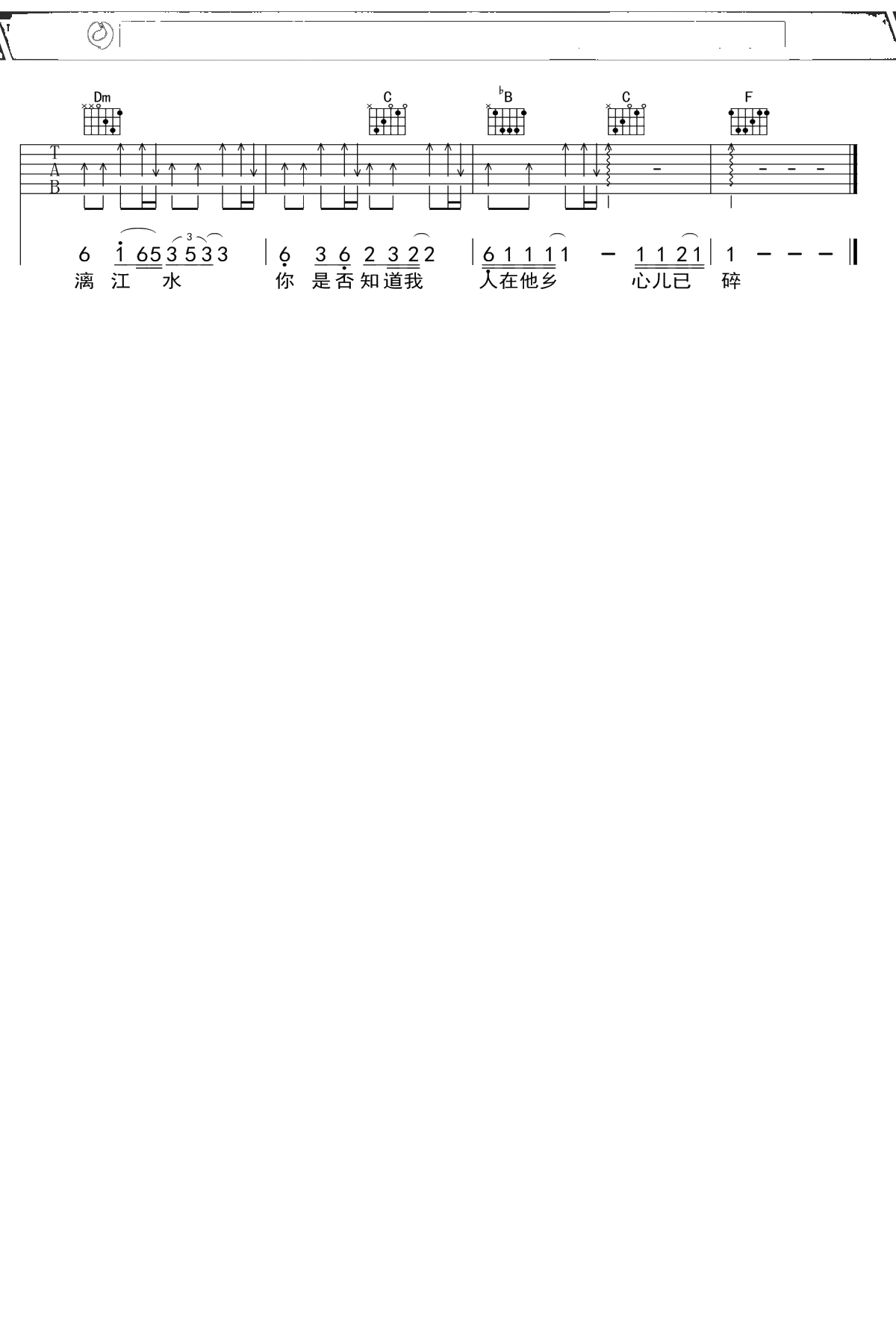 李治利《漓江水》吉他谱 F调弹唱六线谱吉他谱
