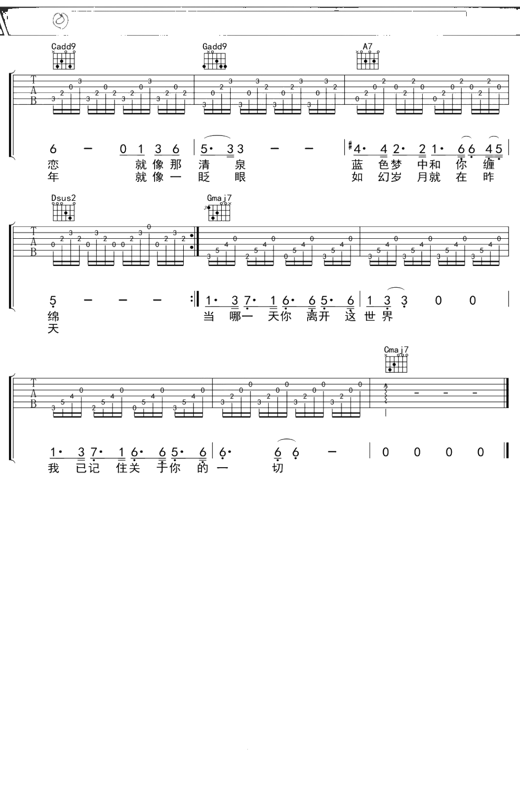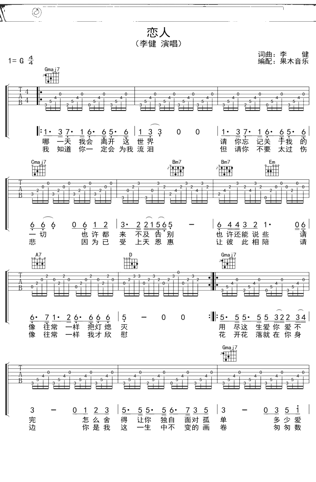 李健《恋人》吉他谱 G调弹唱六线谱吉他谱