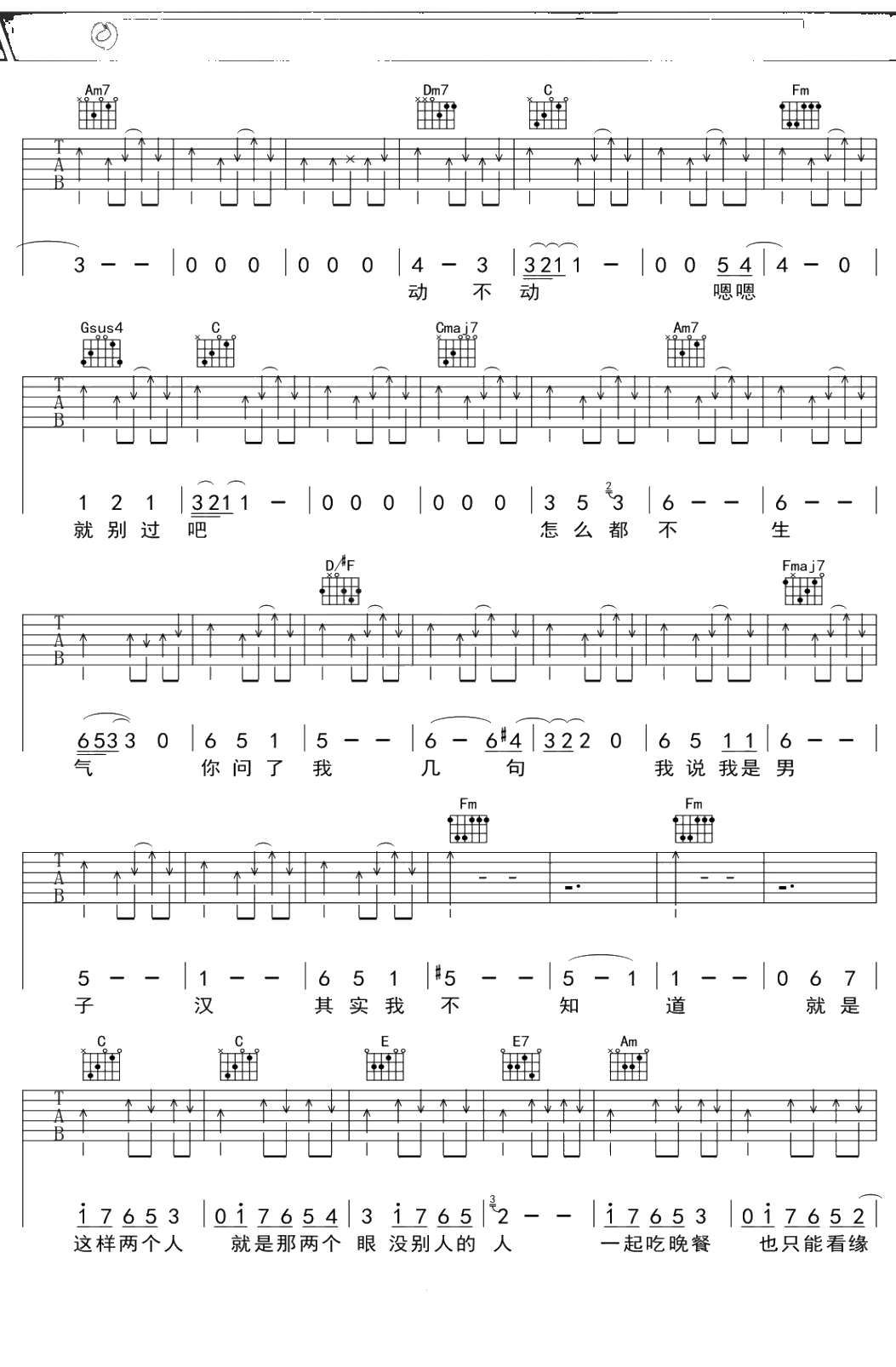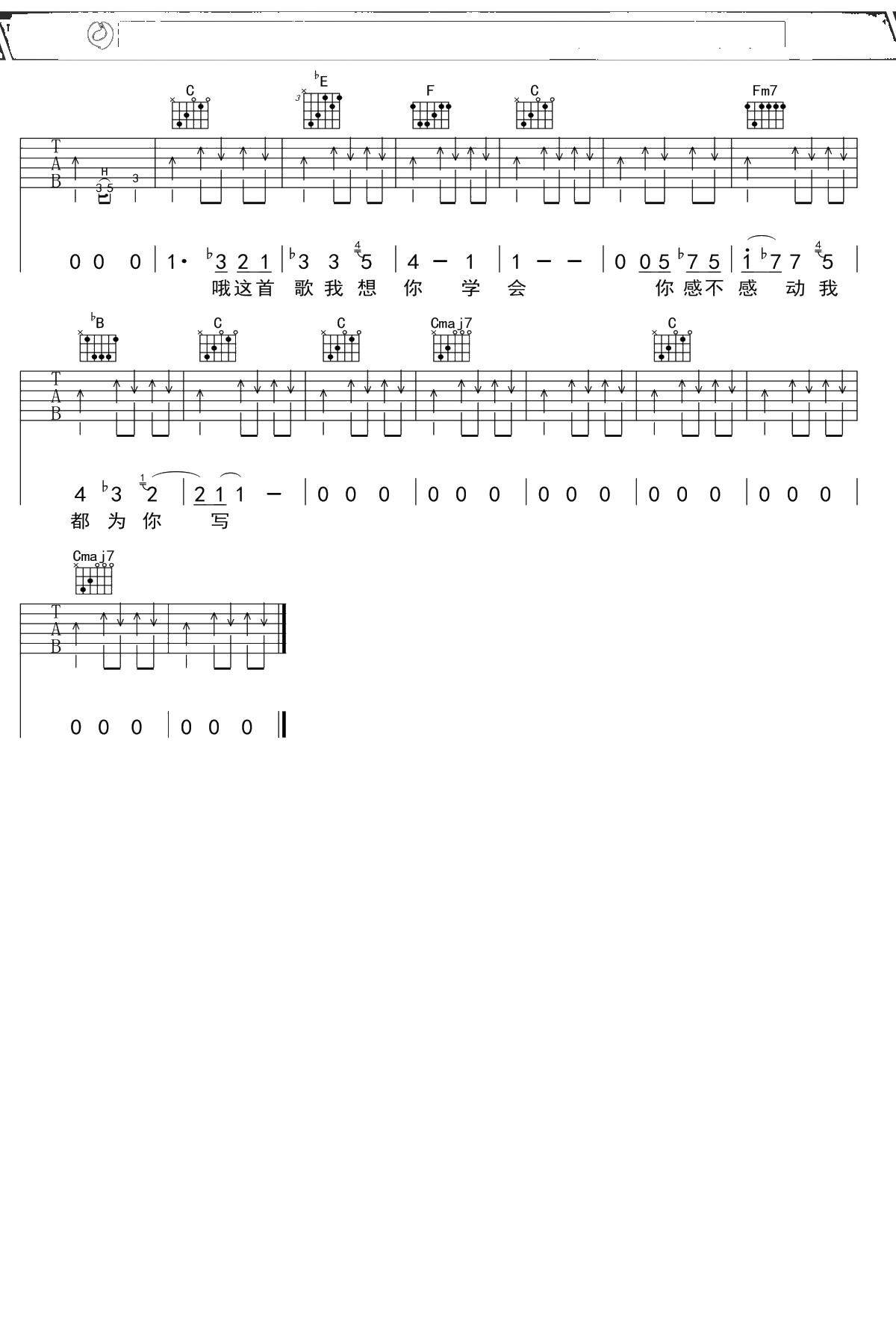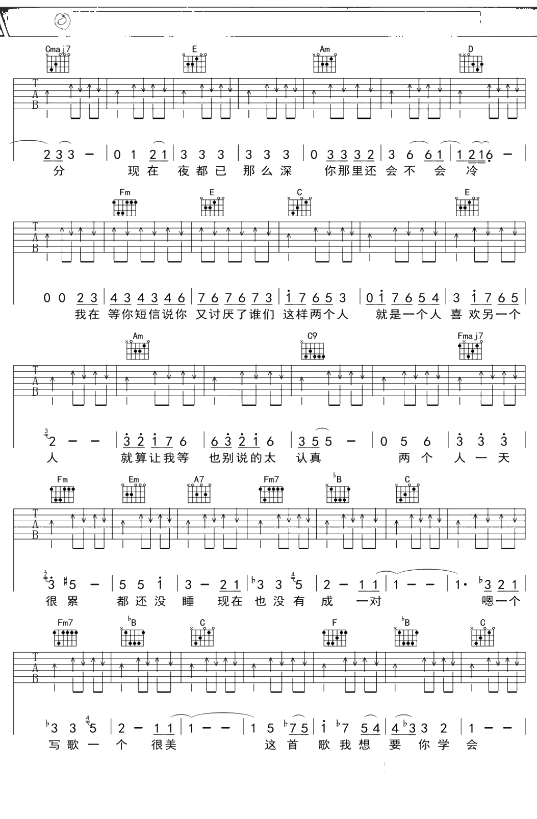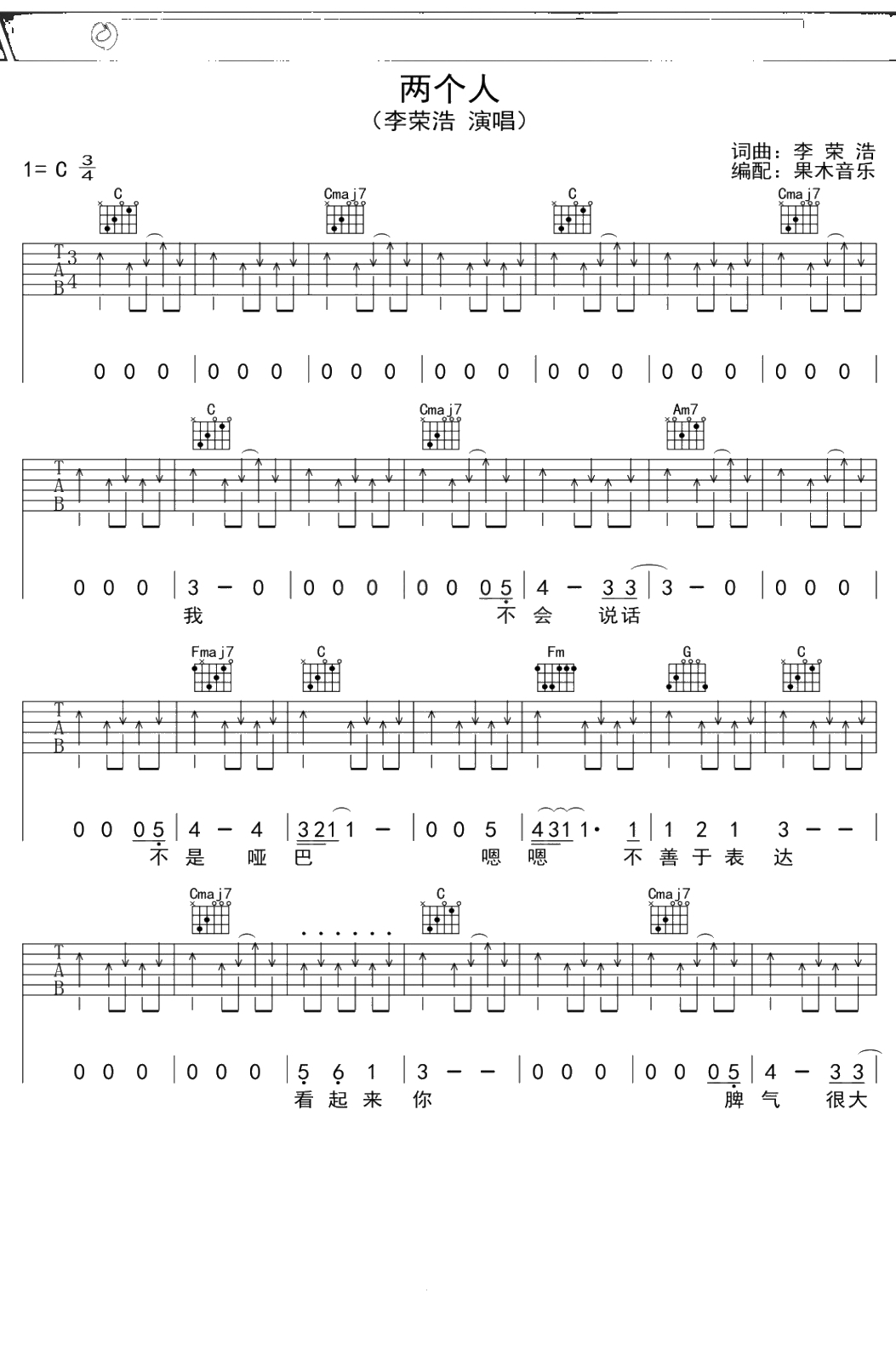 李荣浩《两个人》吉他谱 C调弹唱六线谱吉他谱