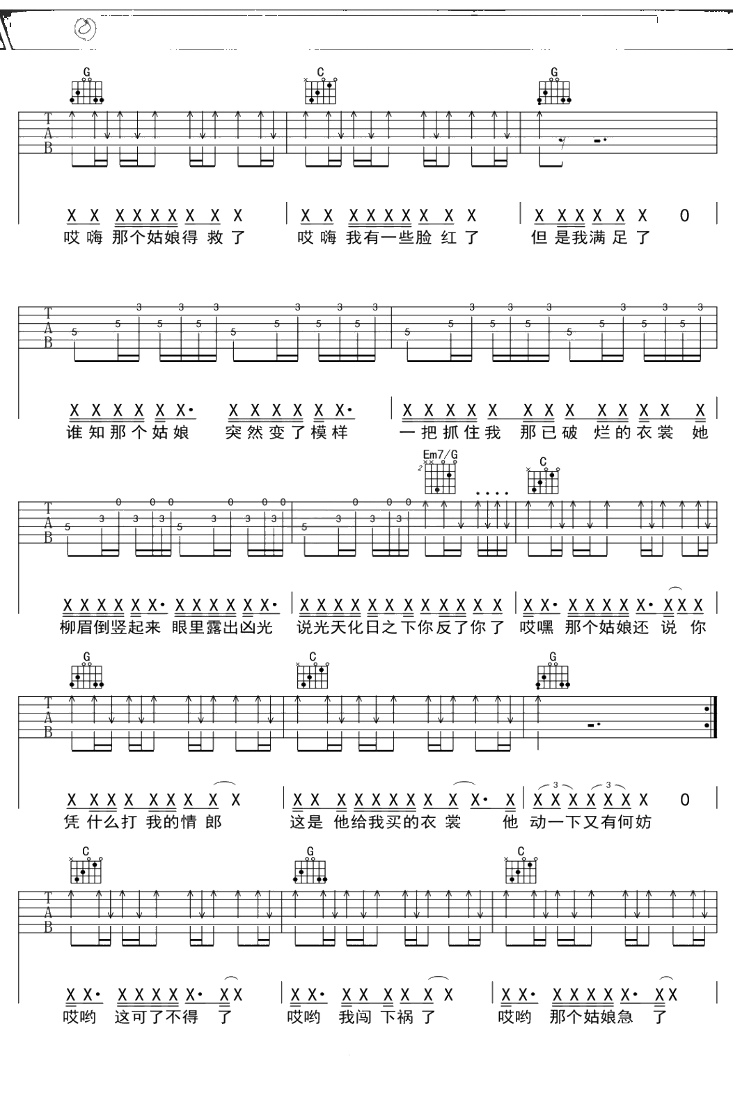 万晓利《流氓》吉他谱 C调弹唱六线谱吉他谱