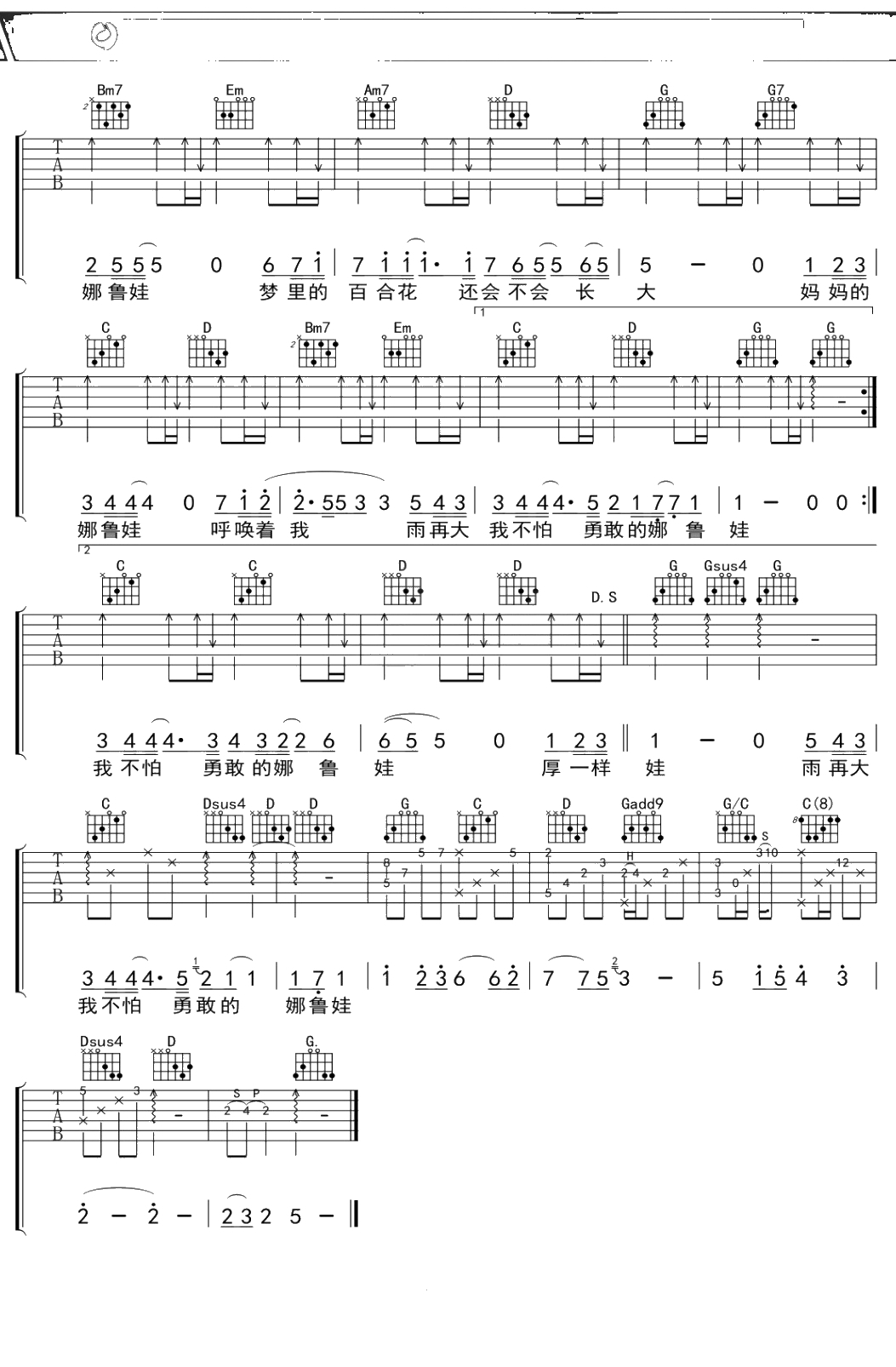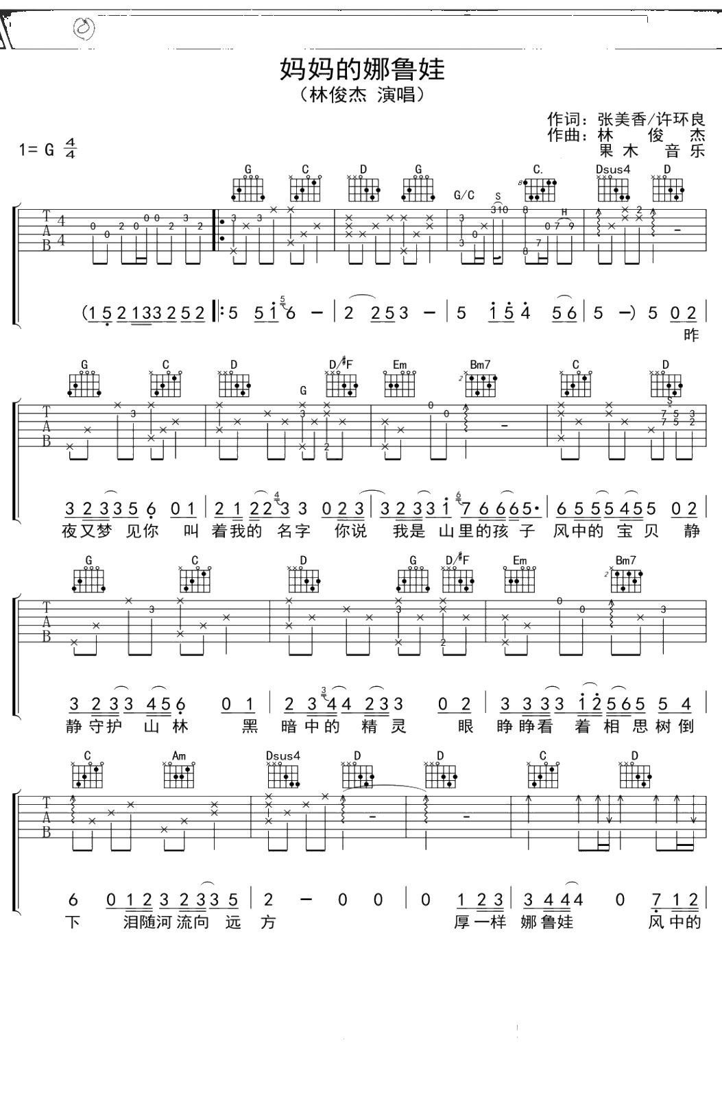 林俊杰《妈妈的耶鲁娃》吉他谱 G调弹唱六线谱