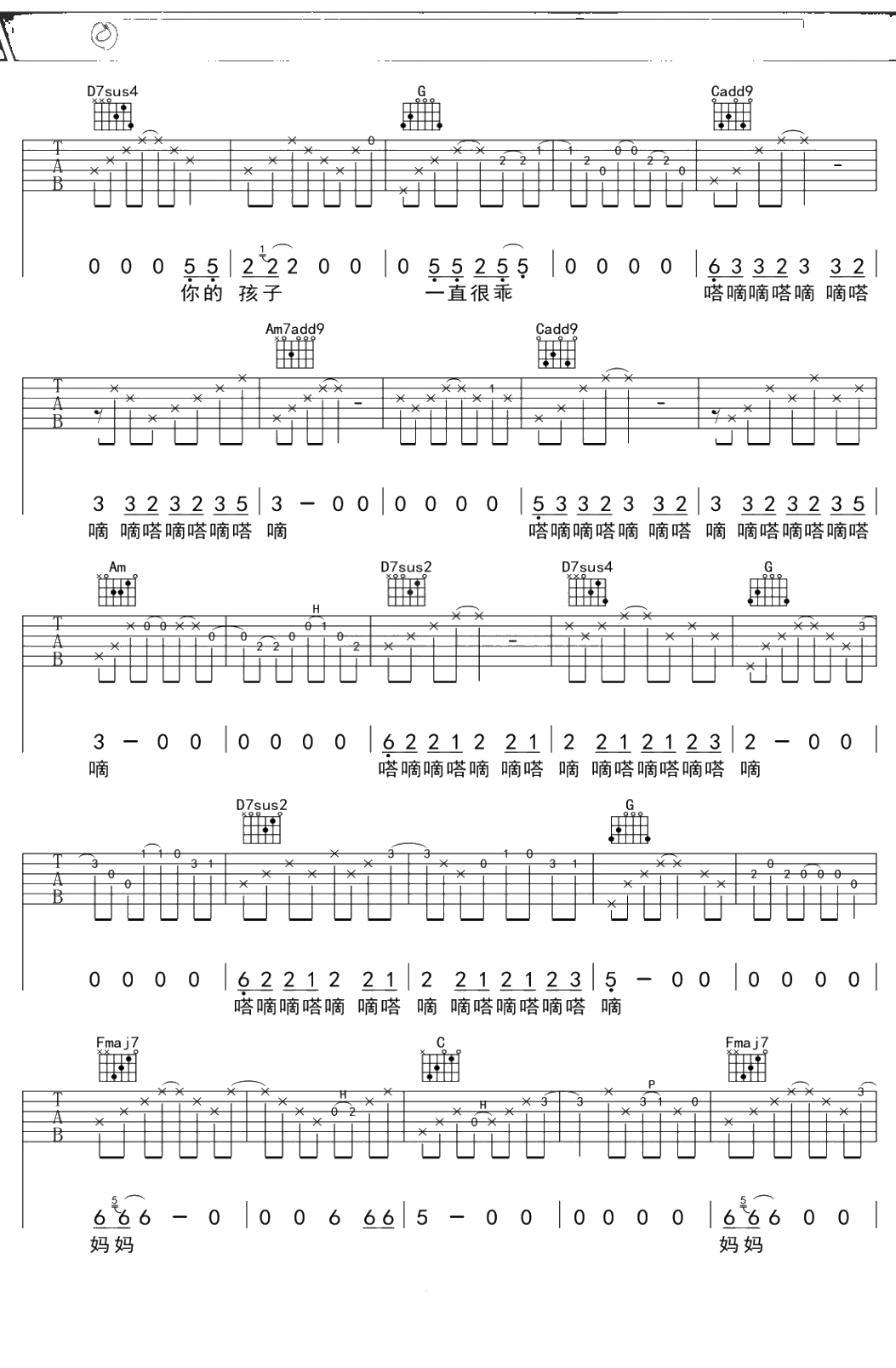 小孩吉他谱