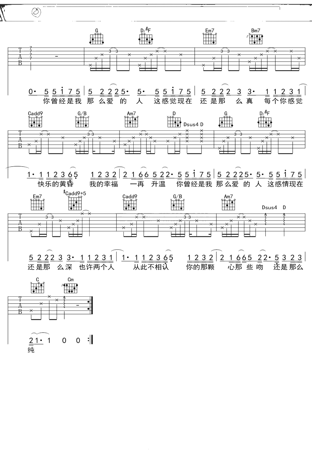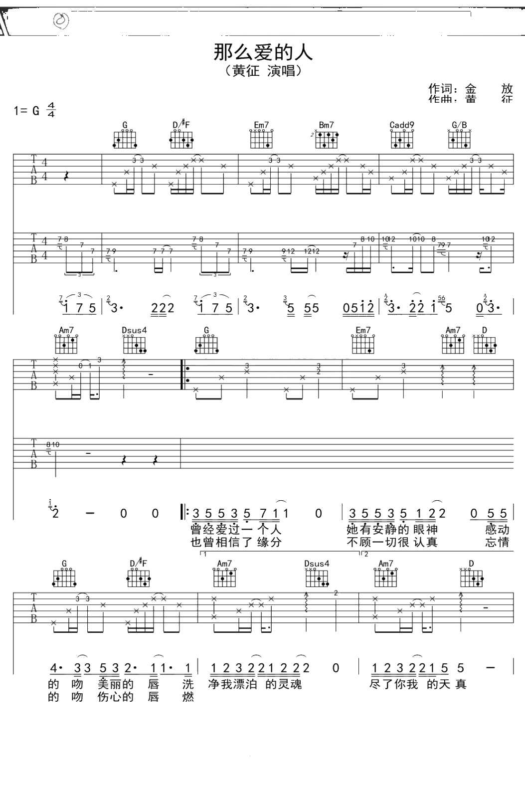 黄征《那么爱的人》吉他谱 G调弹唱六线谱