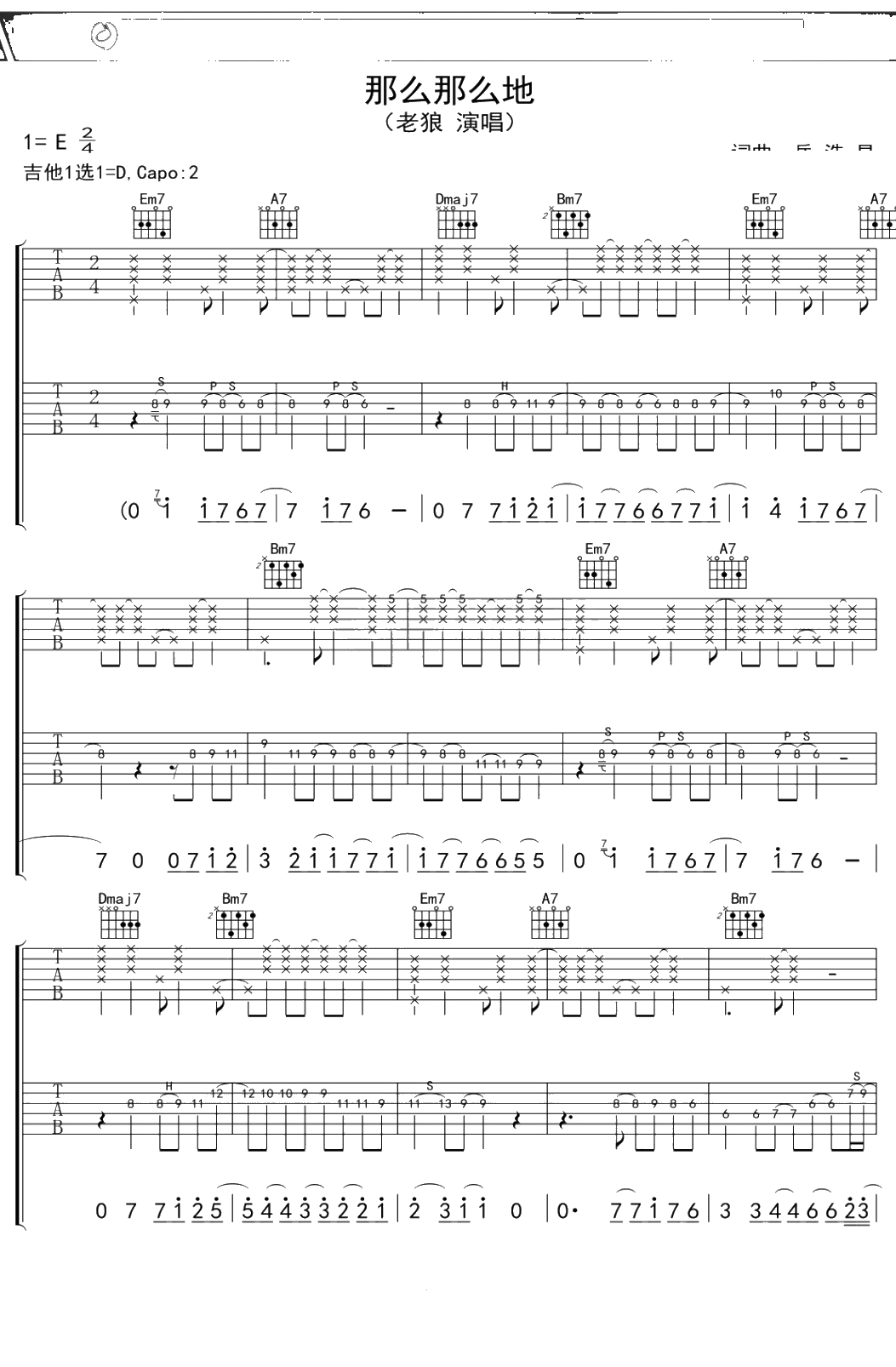 老狼《那么那么地》吉他谱 D调弹唱六线谱吉他谱