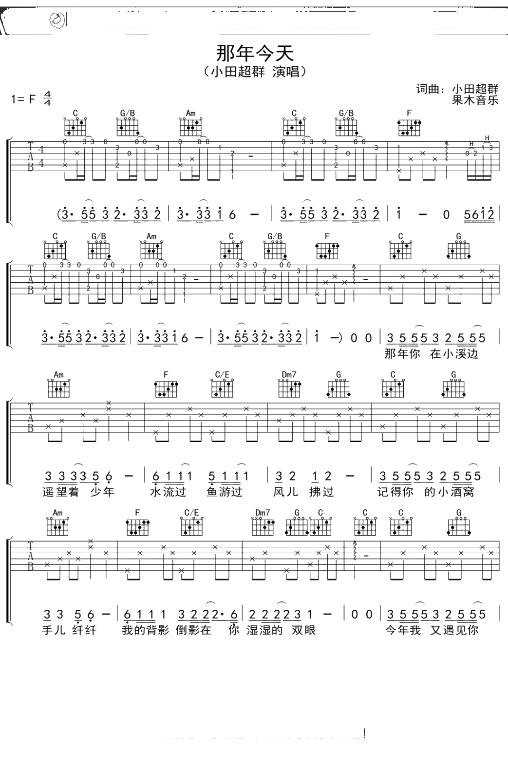 小田超群《那年今天》吉他谱 F调弹唱六线谱