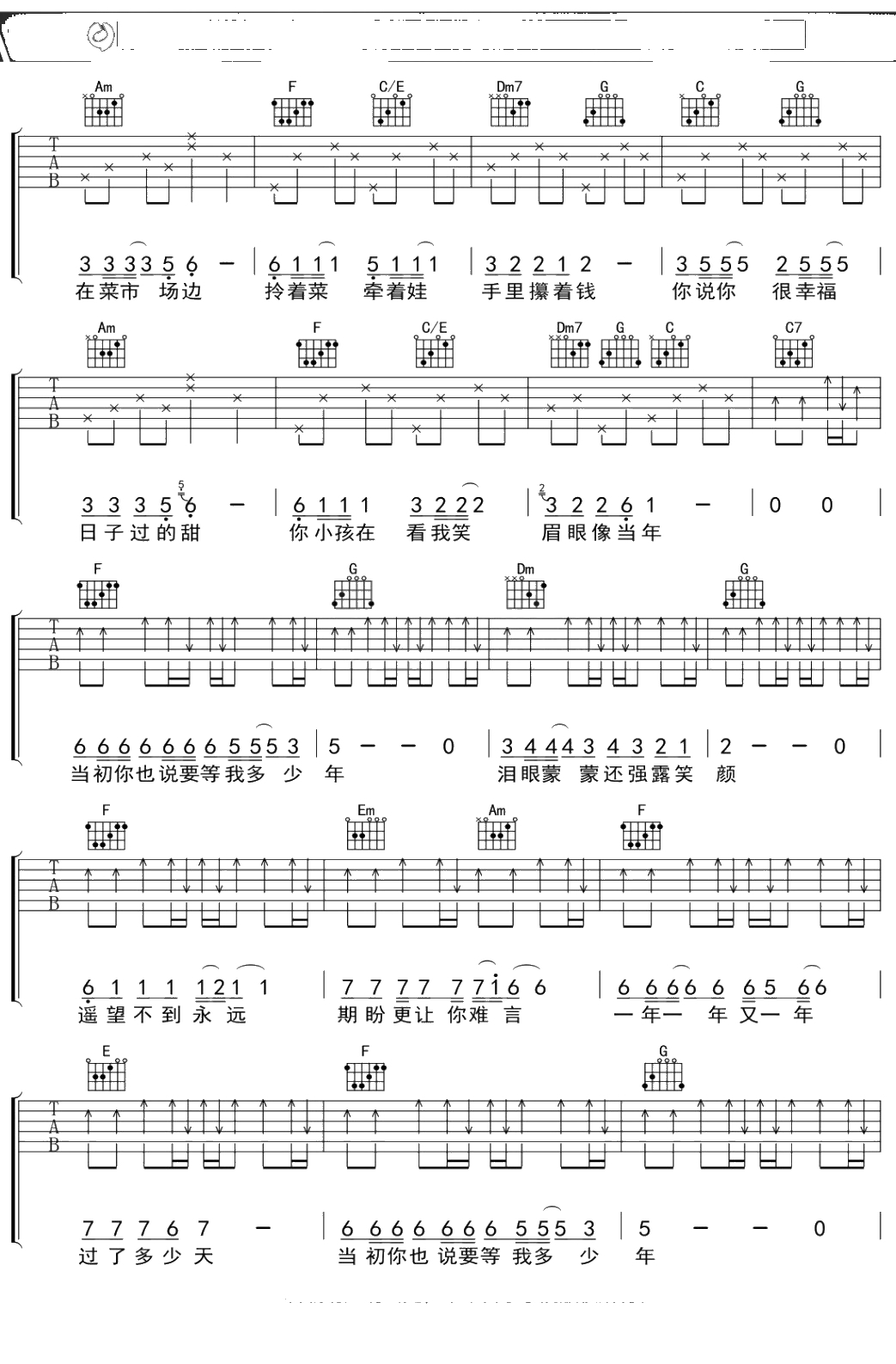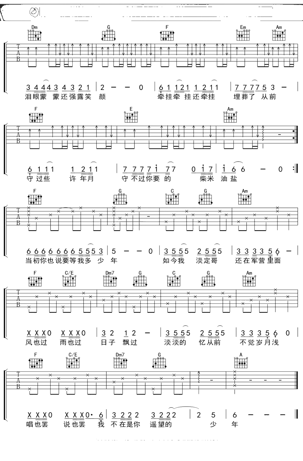 小田超群《那年今天》吉他谱 F调弹唱六线谱吉他谱