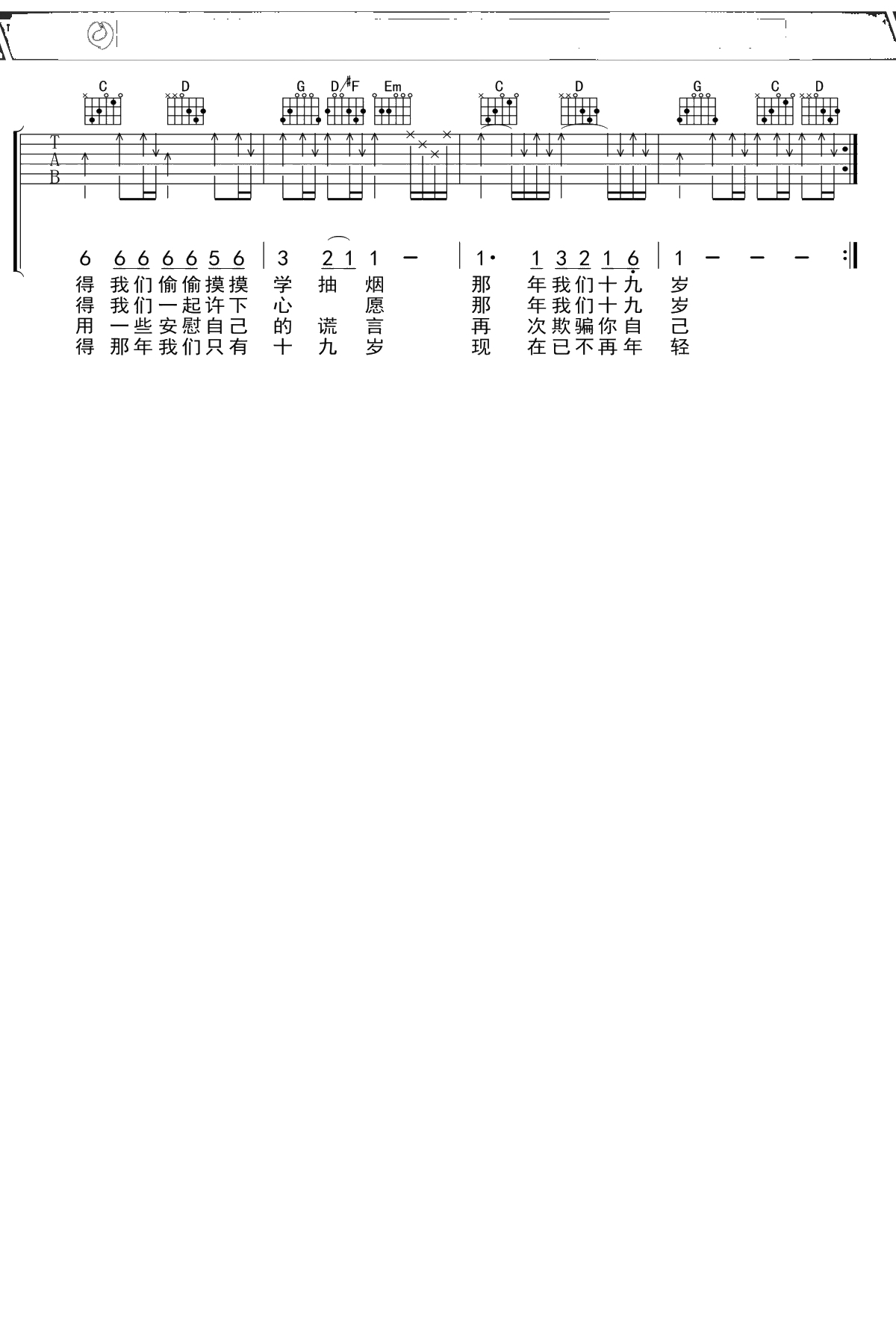 马兆骏《那年我们十九岁》吉他谱 G调弹唱六线谱吉他谱