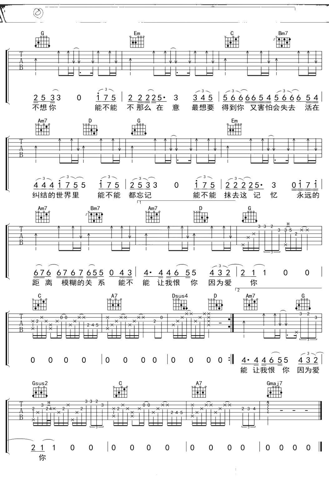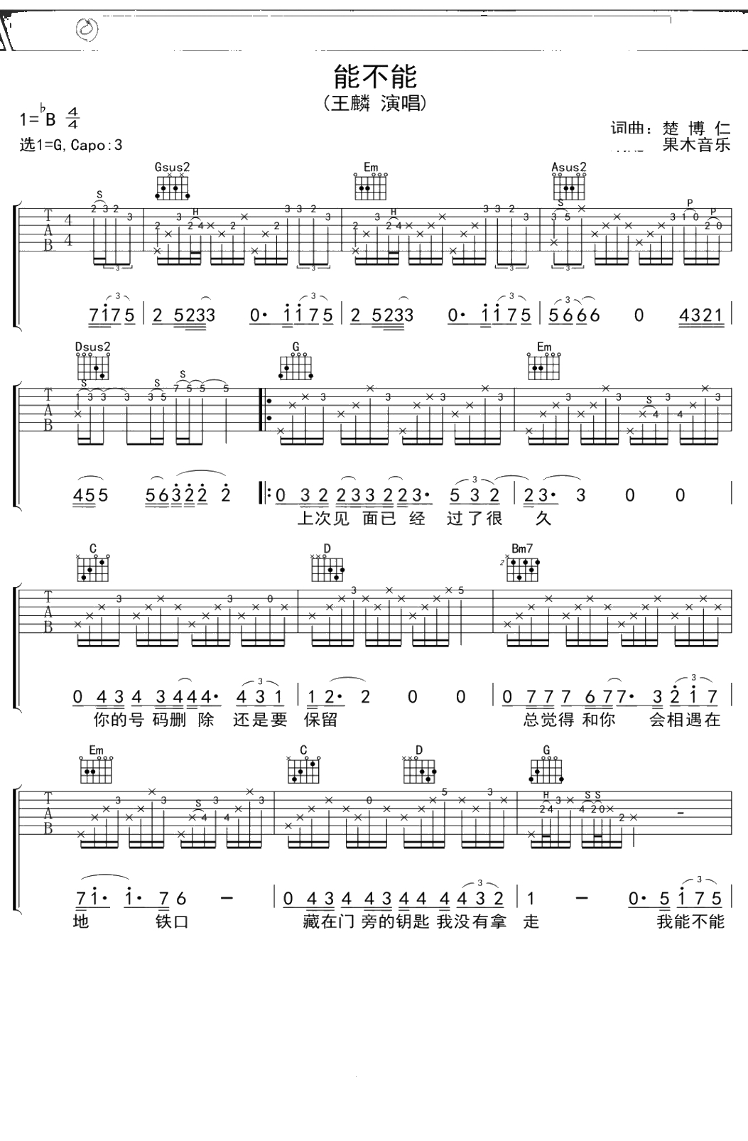 王麟《能不能》吉他谱 G调弹唱六线谱