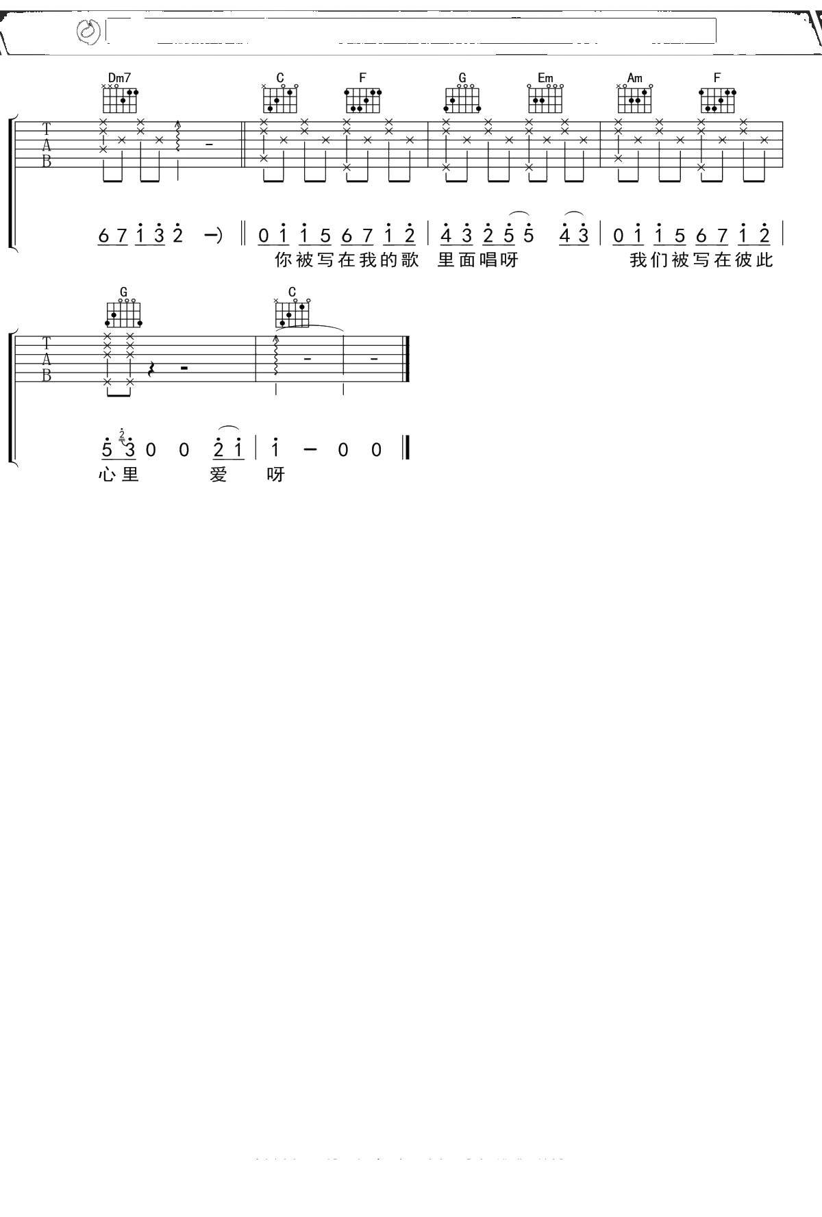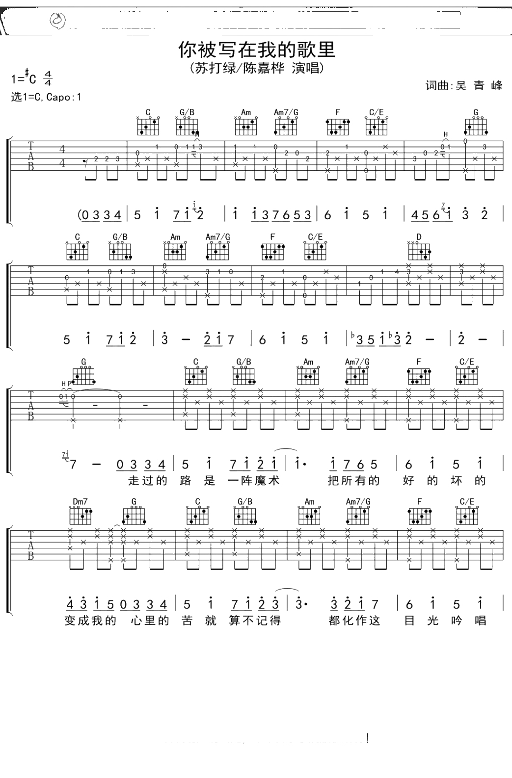 苏打绿《你被写在我的歌里》吉他谱 C调弹唱六线谱吉他谱