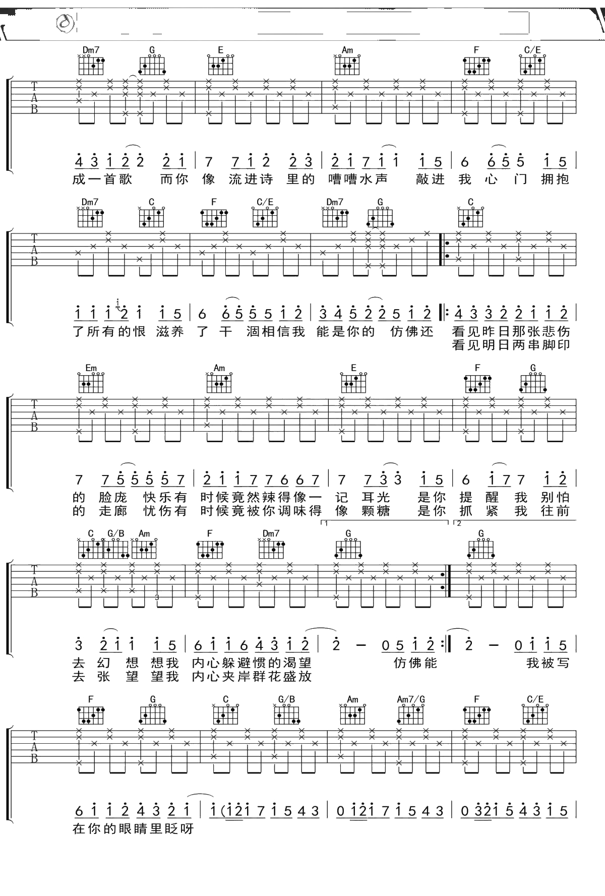 苏打绿《你被写在我的歌里》吉他谱 C调弹唱六线谱
