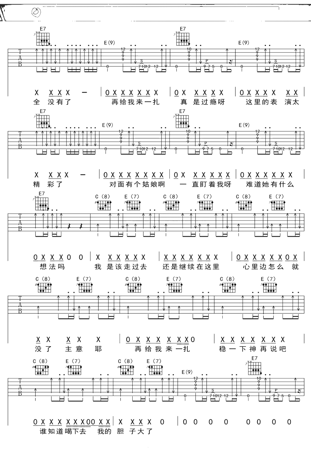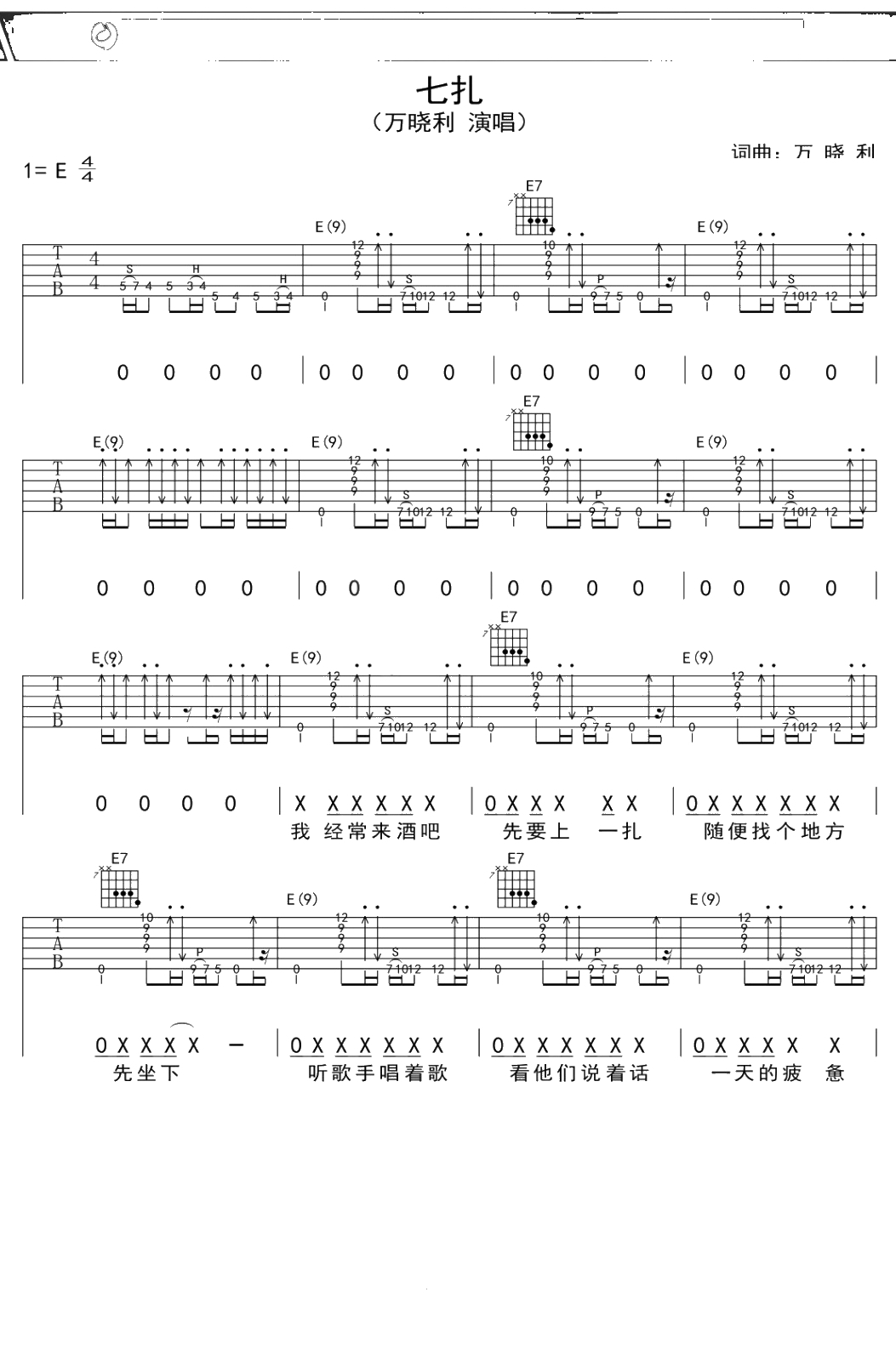 万晓利《七扎》吉他谱 E调弹唱六线谱