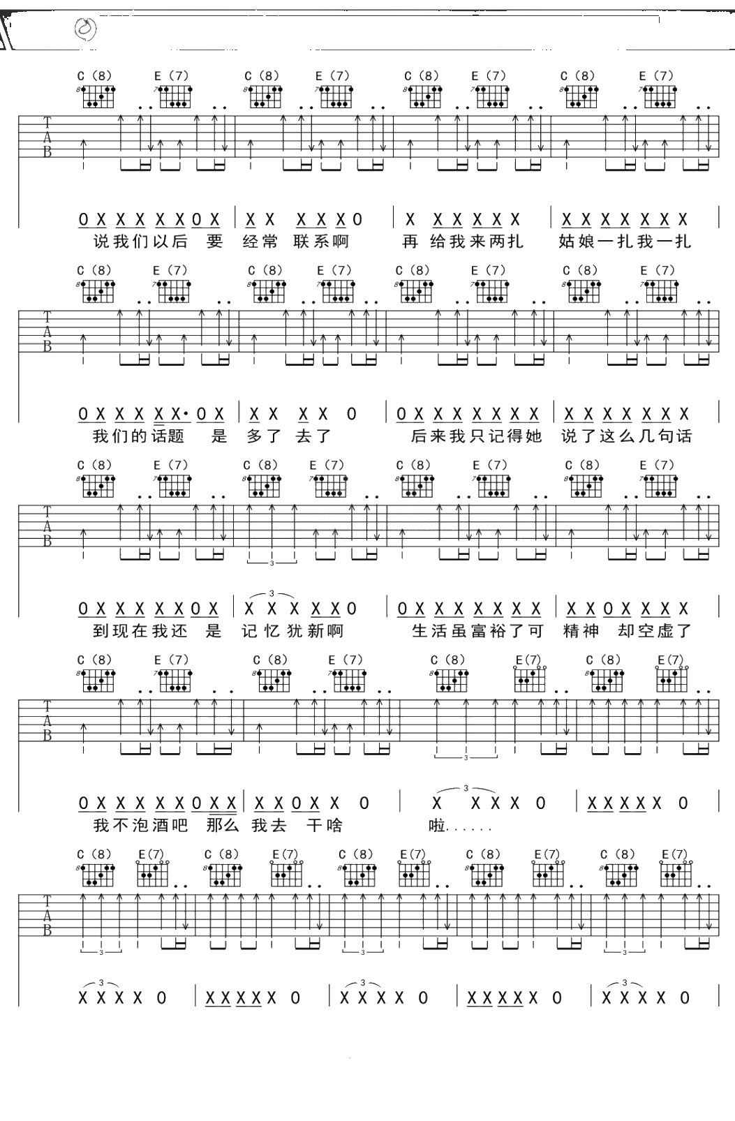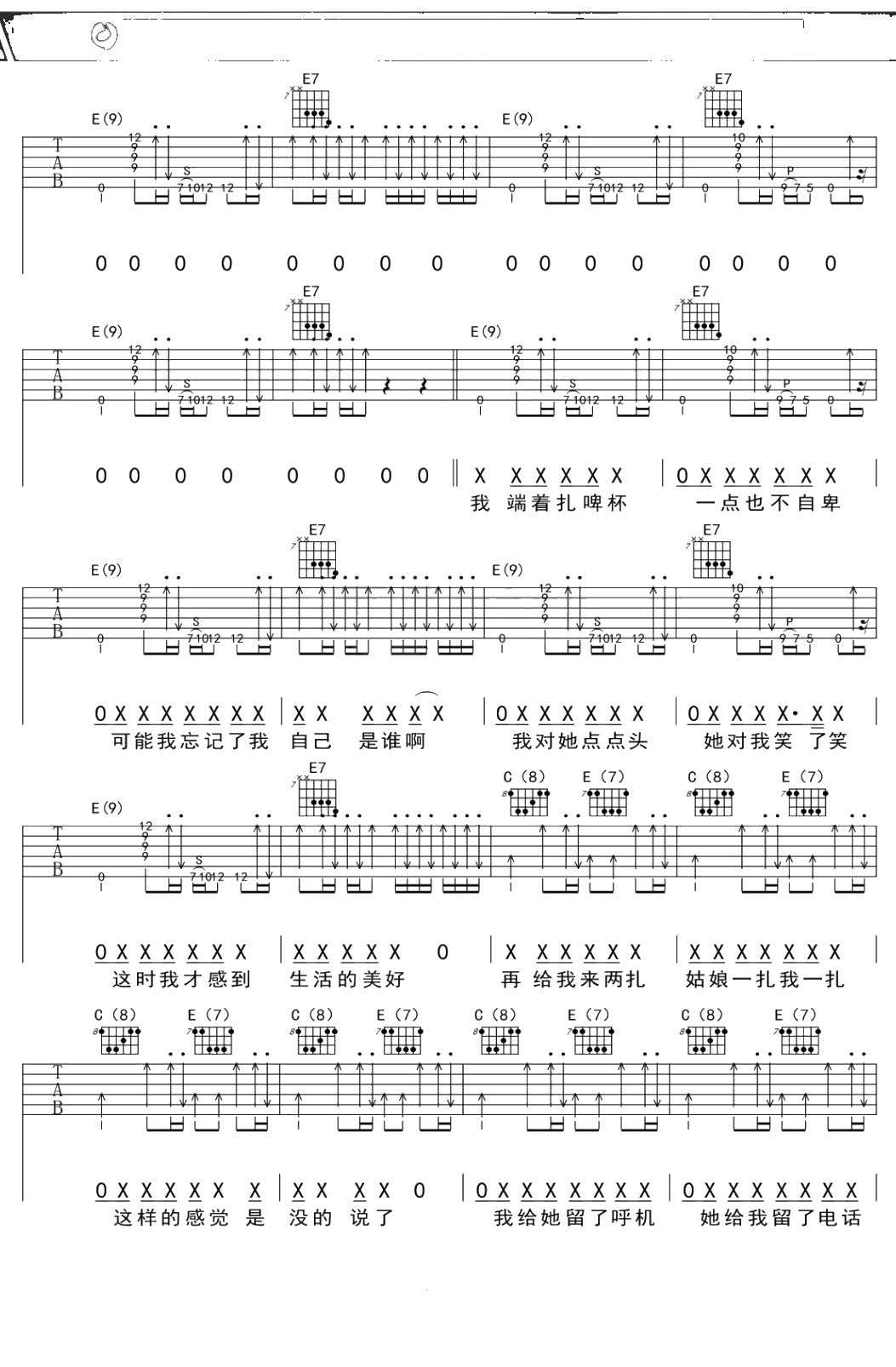 万晓利《七扎》吉他谱 E调弹唱六线谱吉他谱