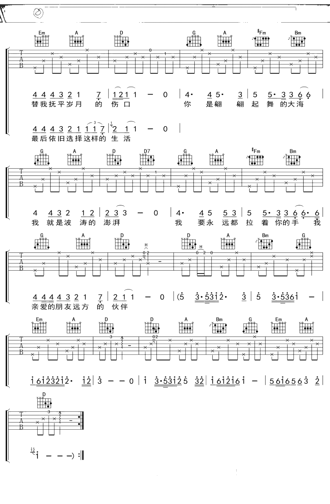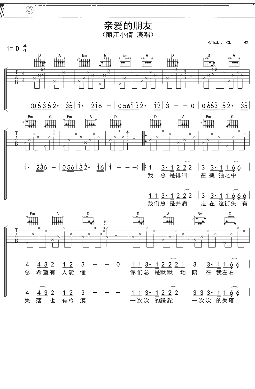 丽江小倩《亲爱的朋友》吉他谱 D调弹唱六线谱吉他谱