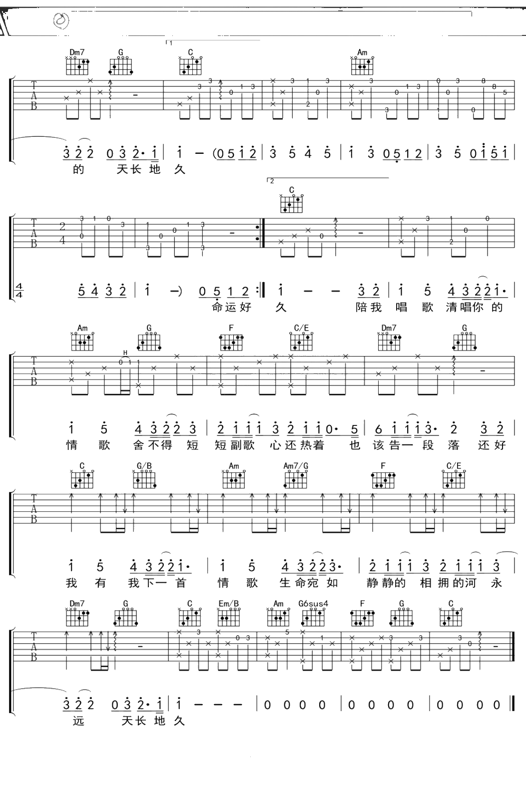 梁静茹《情歌》吉他谱 C调弹唱六线谱