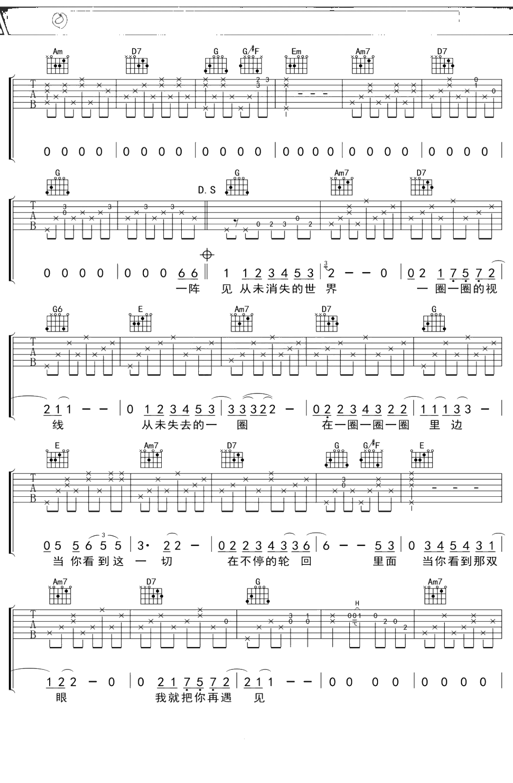 树子《圈圈》吉他谱 G调弹唱六线谱