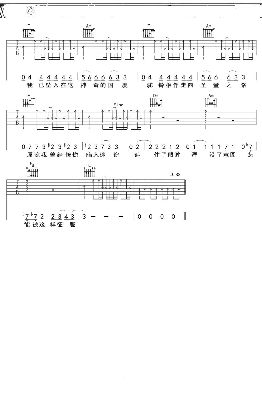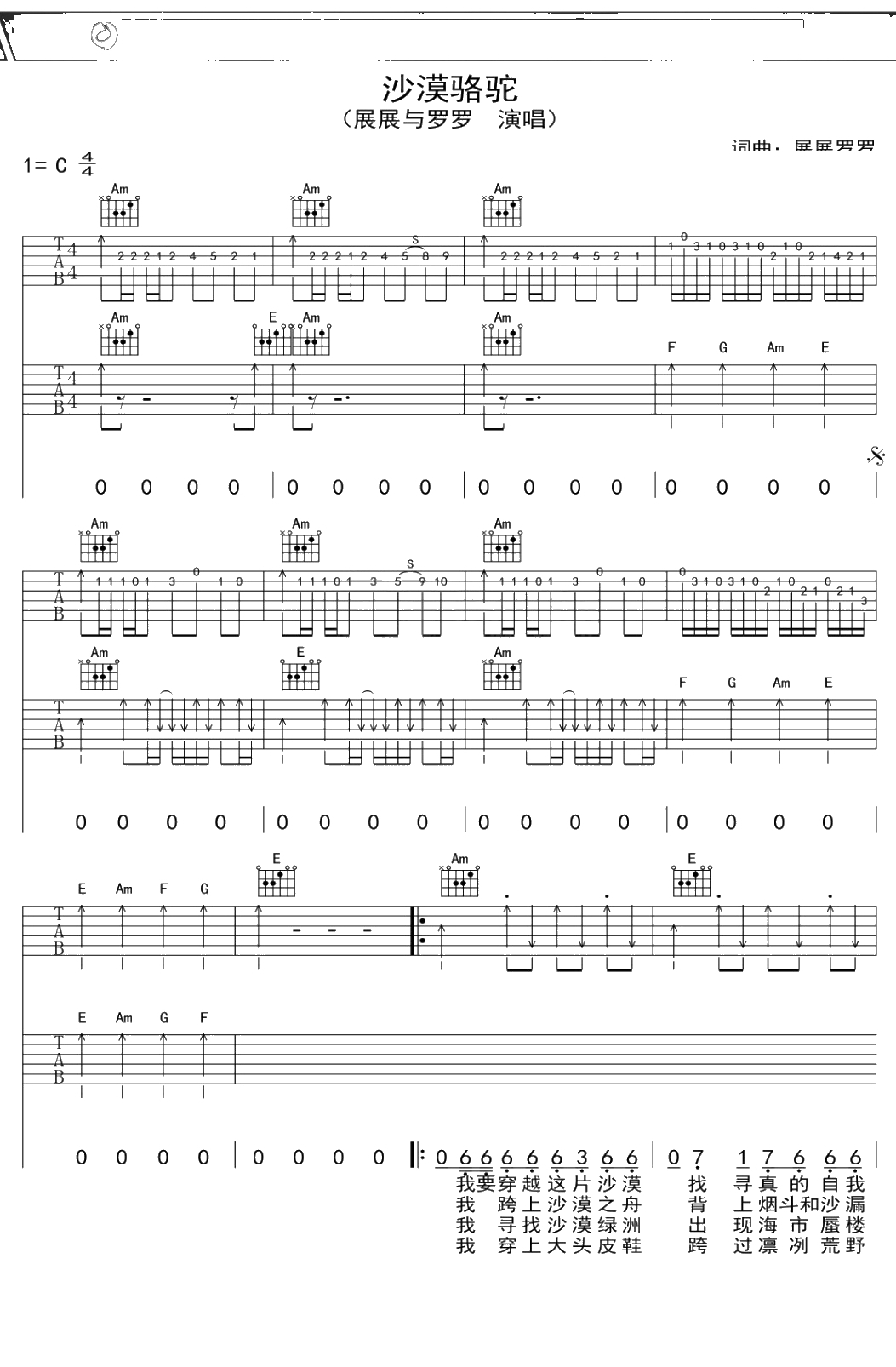 展展与罗罗《沙漠骆驼》吉他谱 C调弹唱六线谱