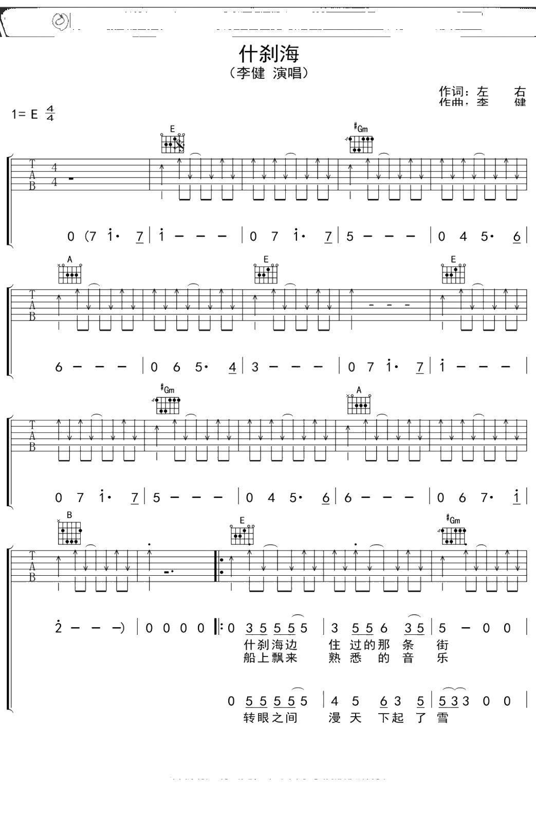李健《什刹海》吉他谱 E调弹唱六线谱