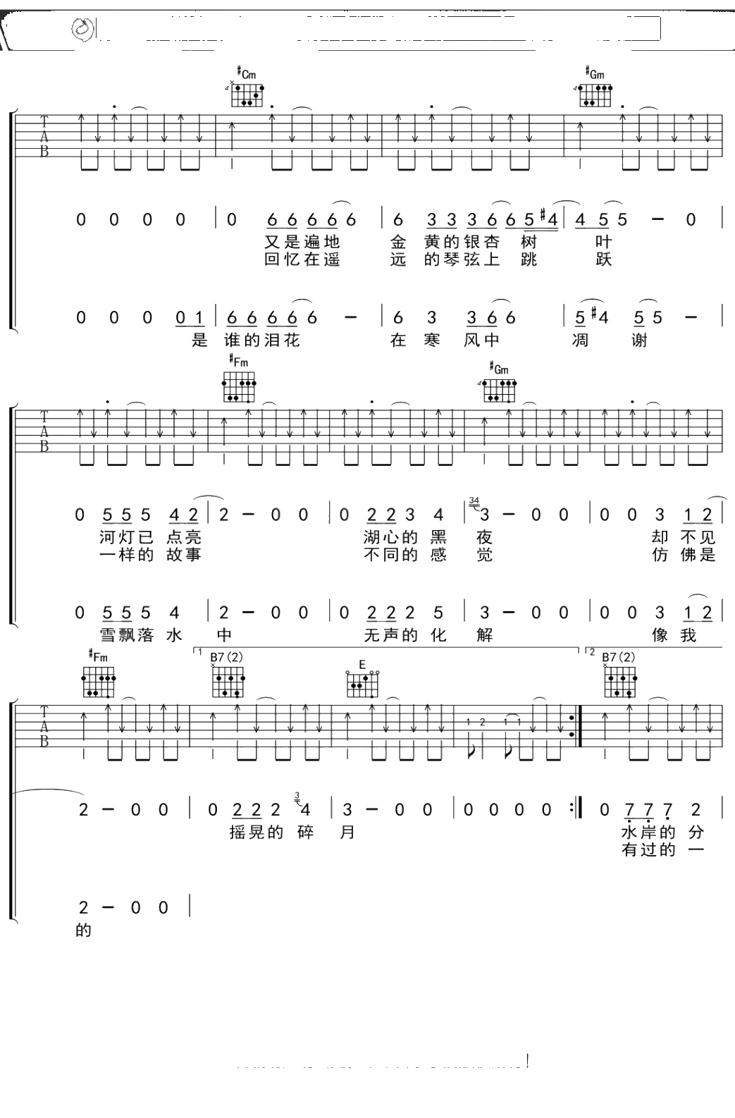 李健《什刹海》吉他谱 E调弹唱六线谱吉他谱