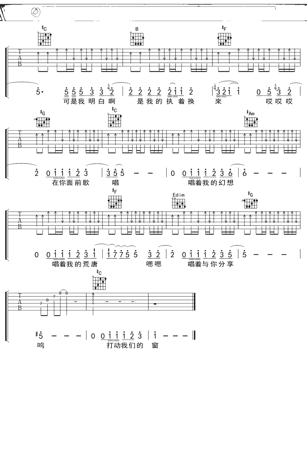 苏打绿《十年一刻》吉他谱 C调弹唱六线谱