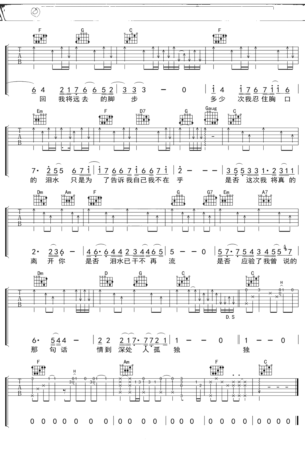 苏芮《是否》吉他谱 C调弹唱六线谱