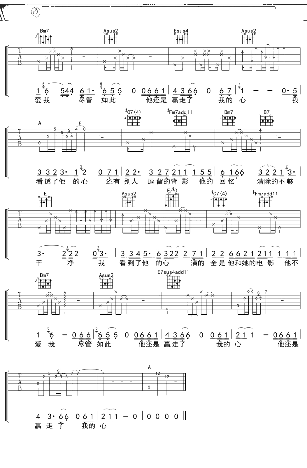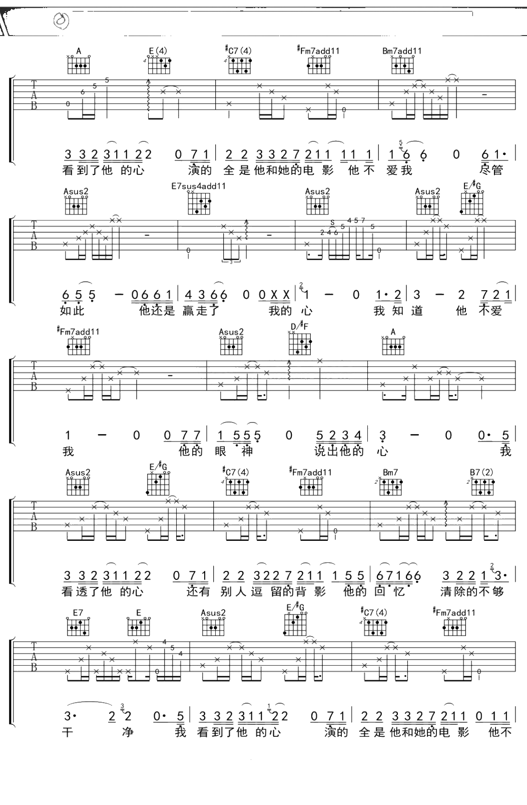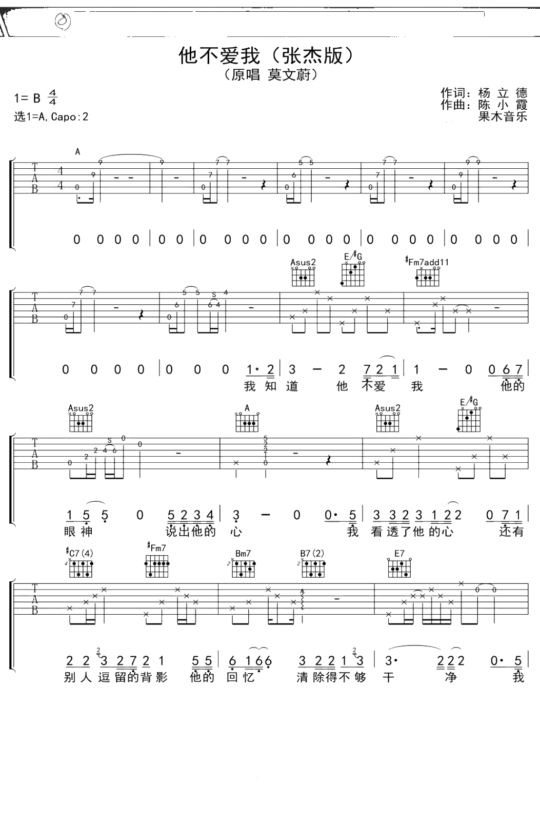 莫文蔚《他不爱我》吉他谱 A调弹唱六线谱吉他谱
