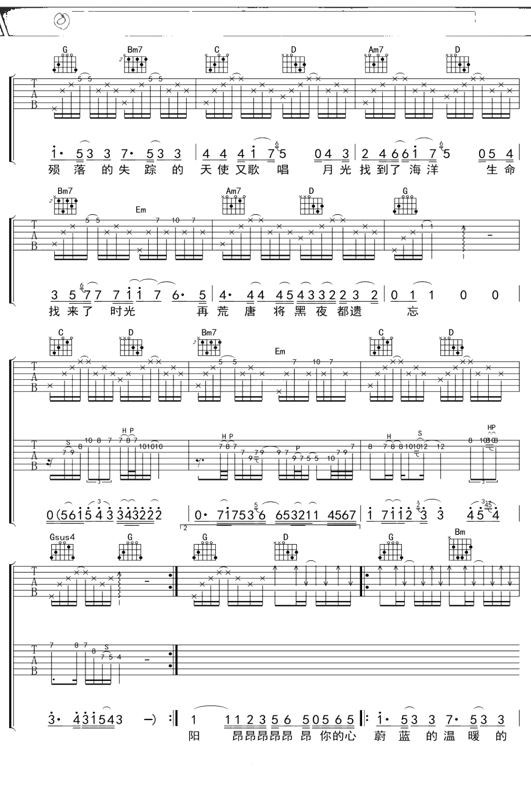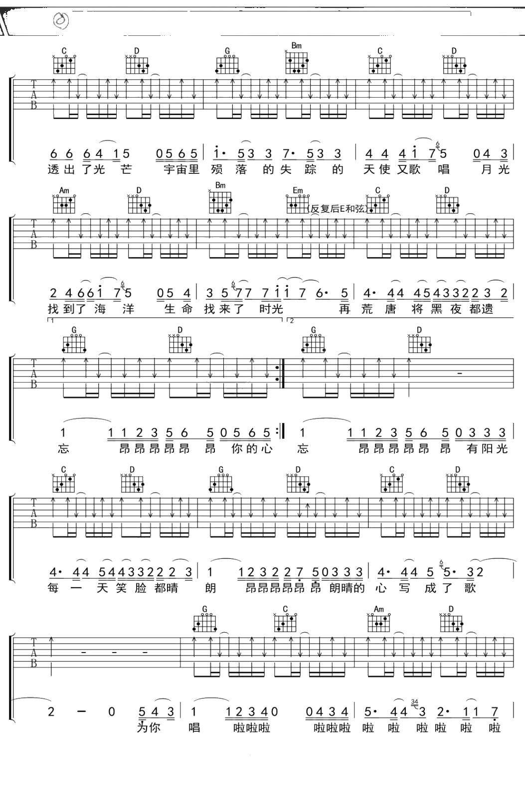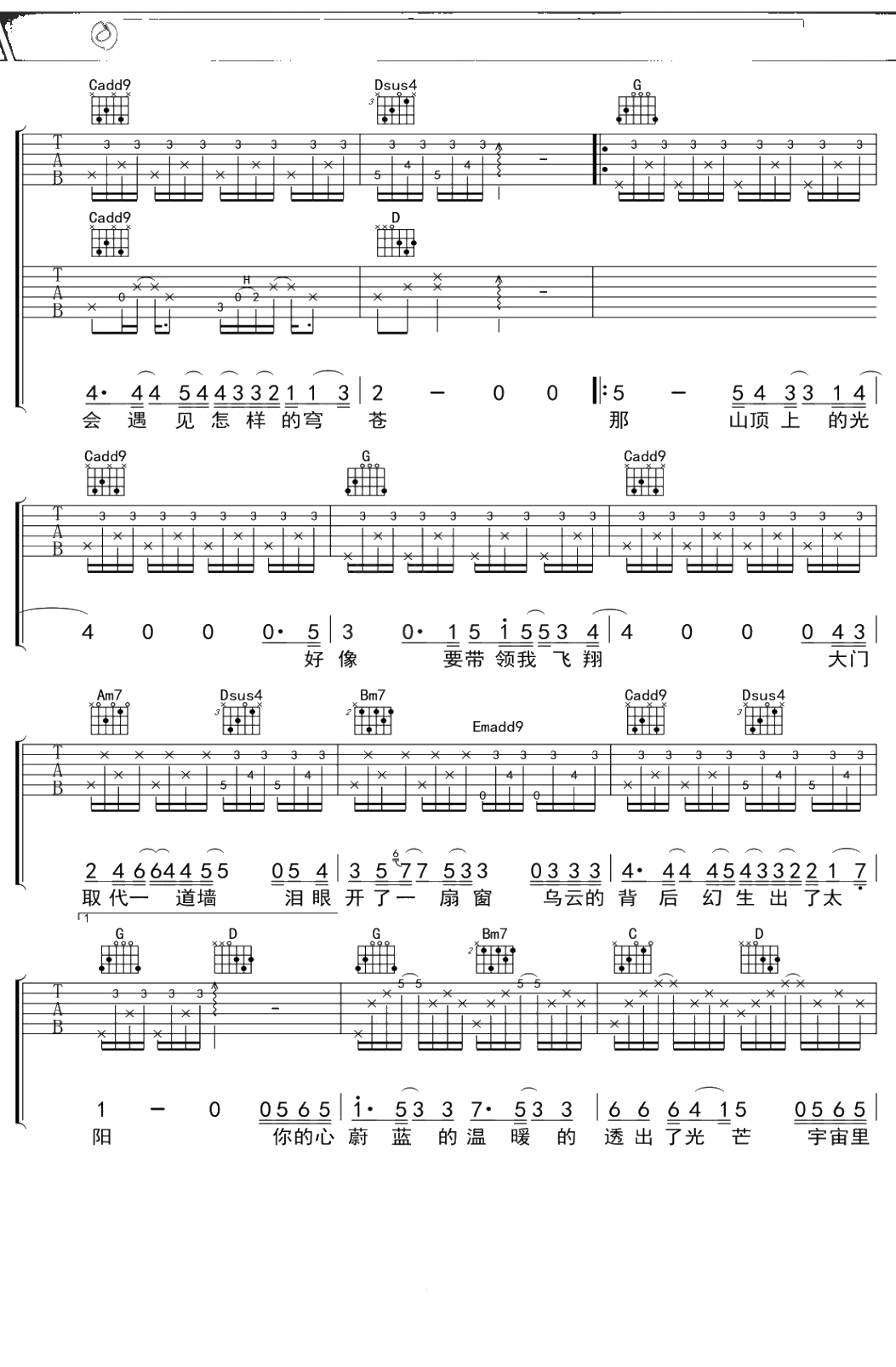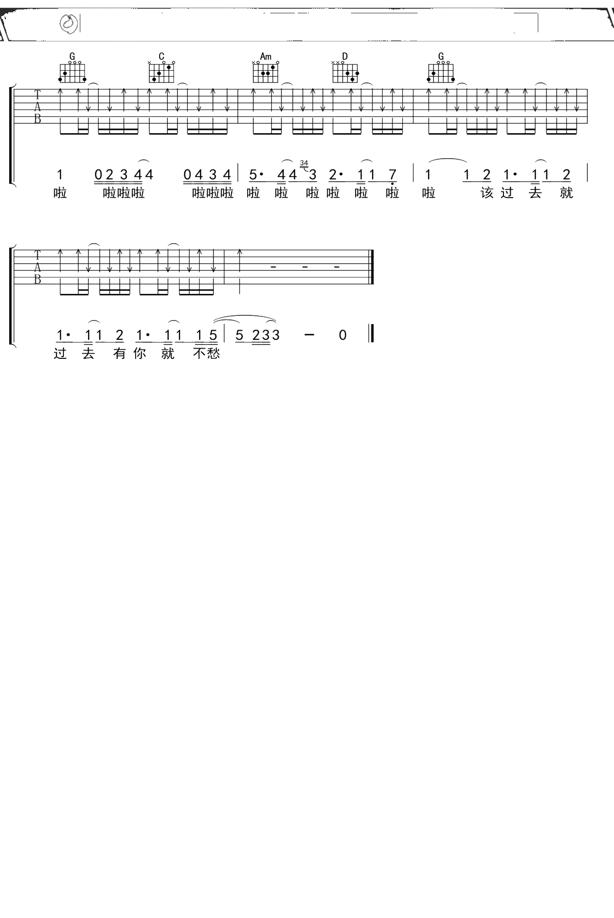 苏打绿《天天晴朗》吉他谱 G调弹唱六线谱
