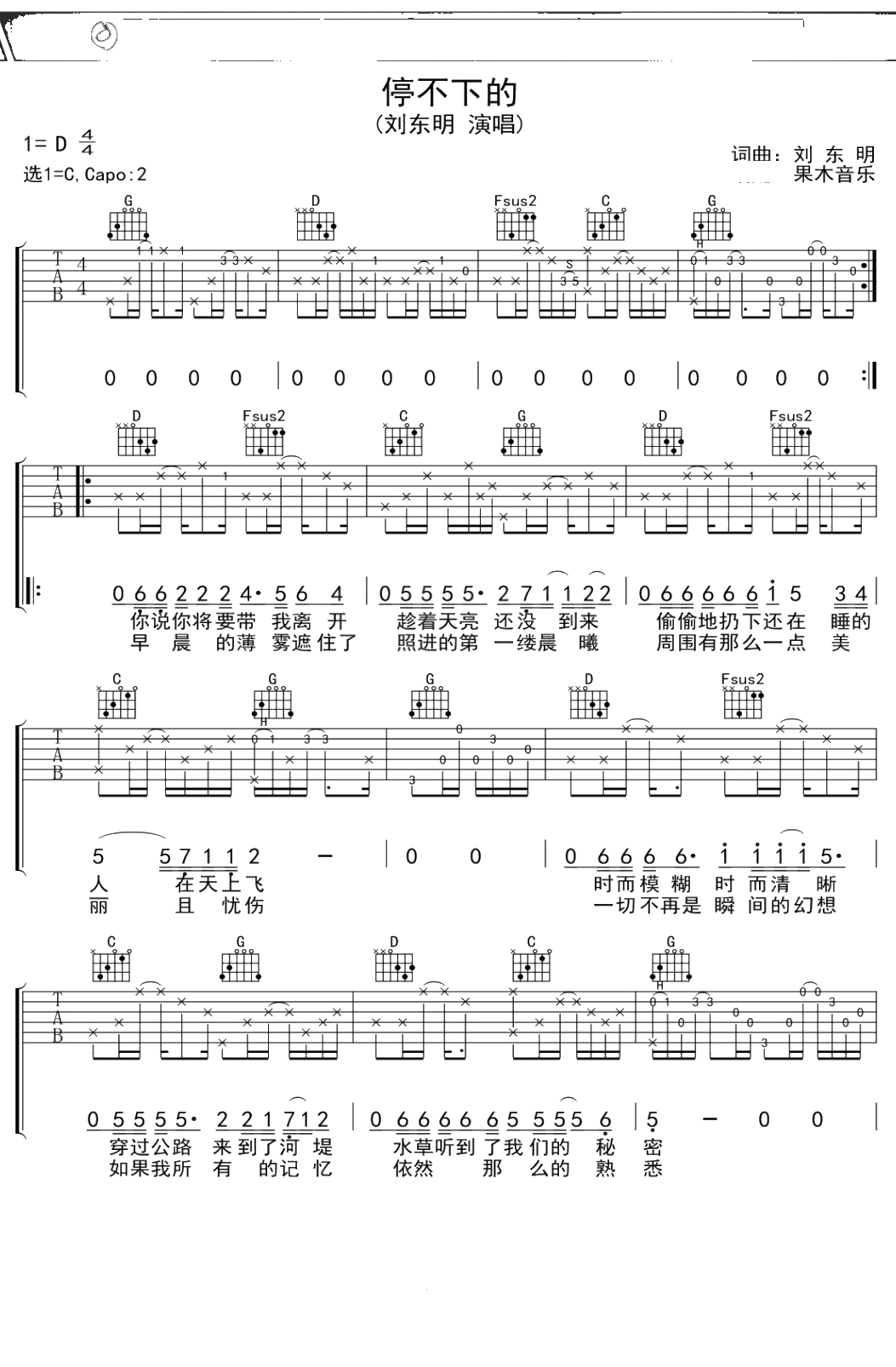 刘东明《停不下来的》吉他谱 C调弹唱六线谱吉他谱