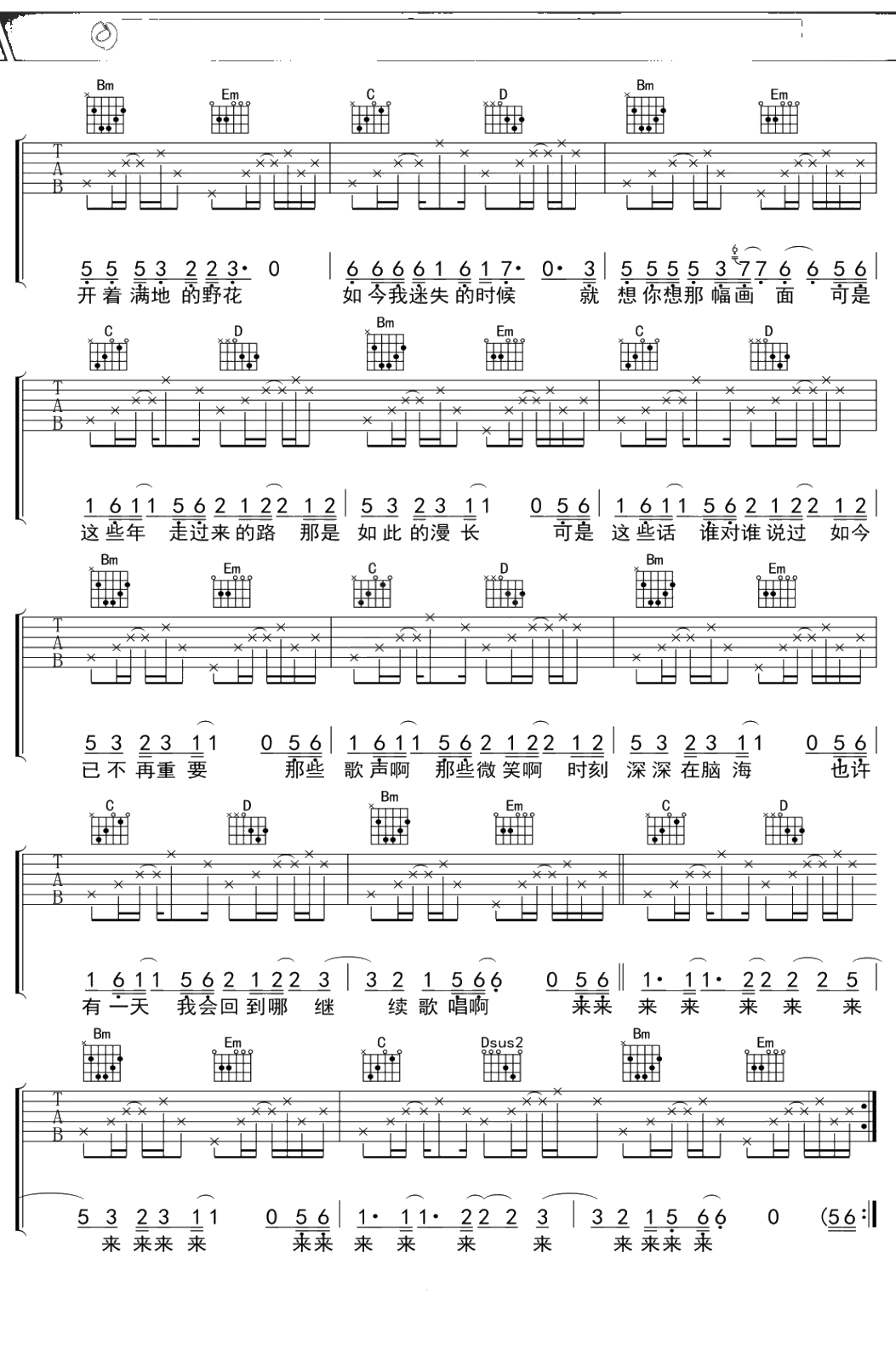 记得吉他谱