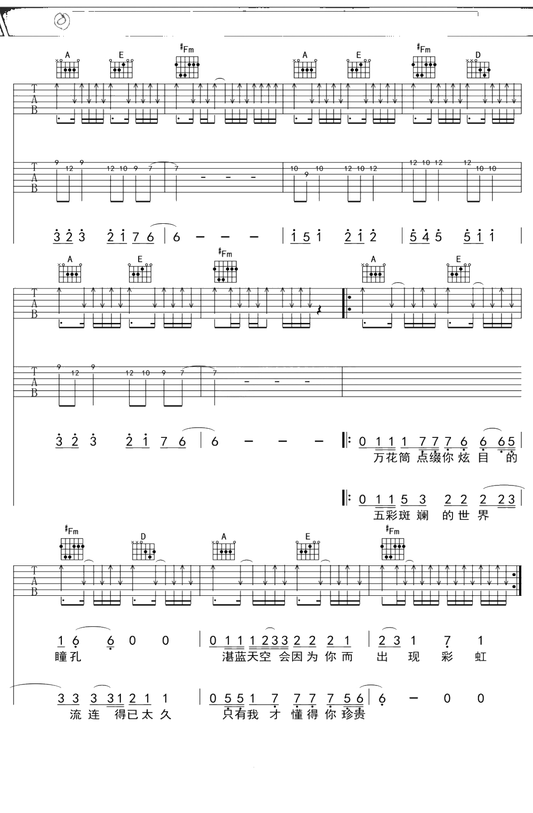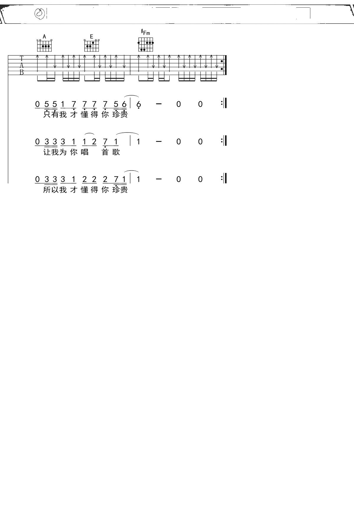 痛苦的信仰《为你唱首歌》吉他谱 A调弹唱六线谱吉他谱