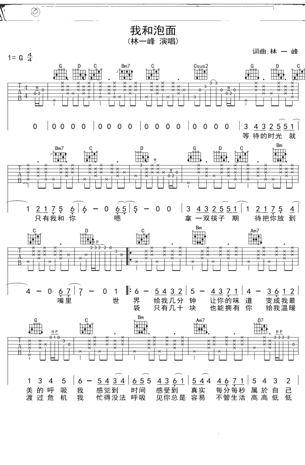 林一峰《我和泡面》吉他谱 G调弹唱六线谱吉他谱