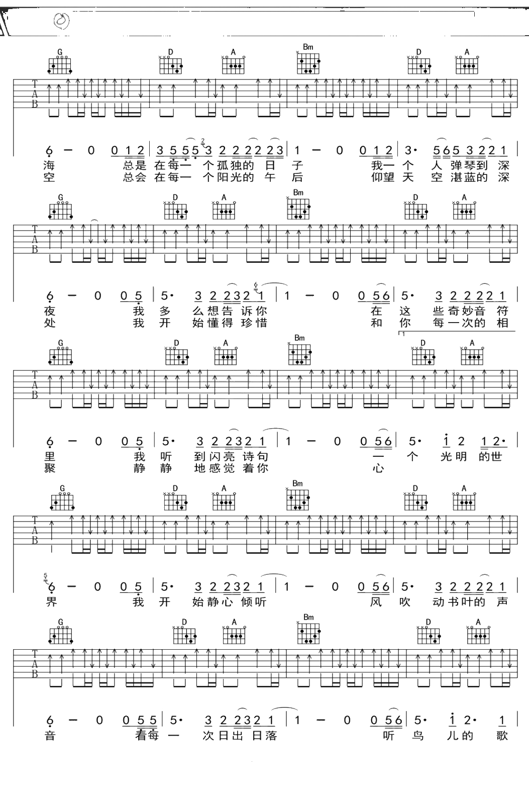 许巍《我们》吉他谱 C调弹唱六线谱