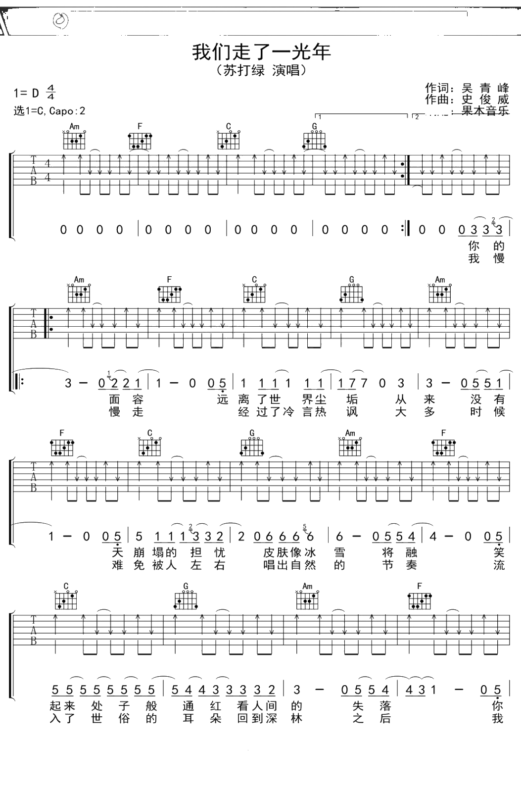 苏打绿《我们走了一光年》吉他谱 C调弹唱六线谱吉他谱