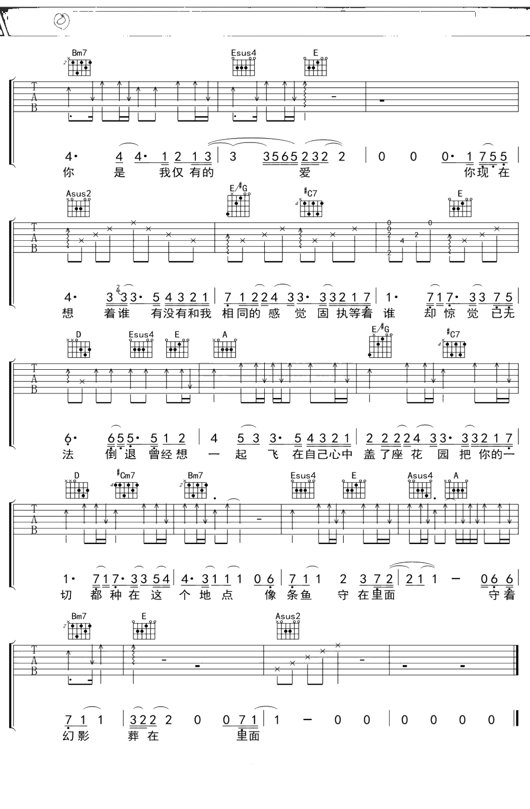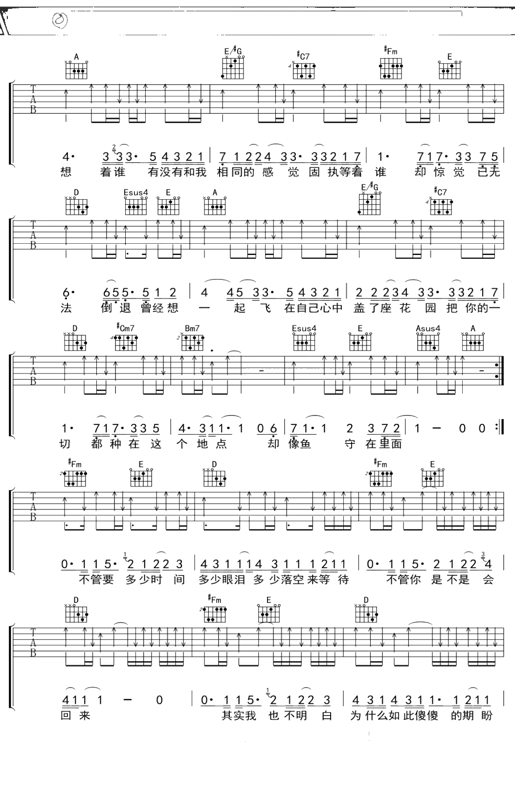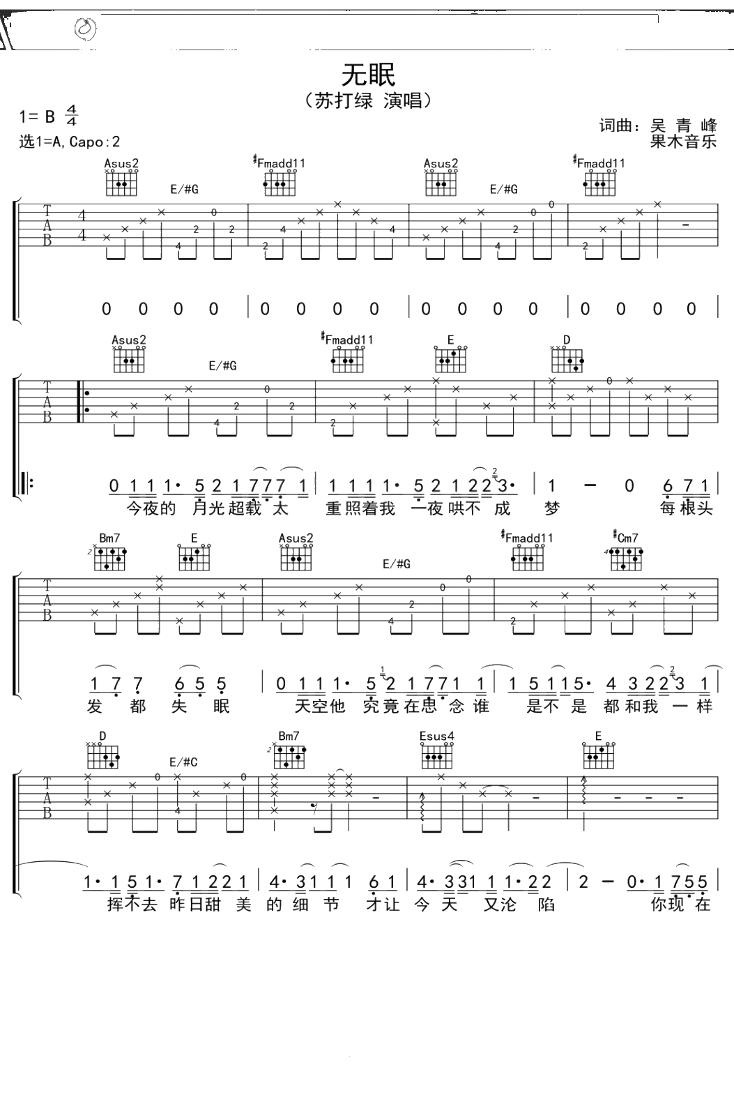 苏打绿《无眠》吉他谱 A调弹唱六线谱