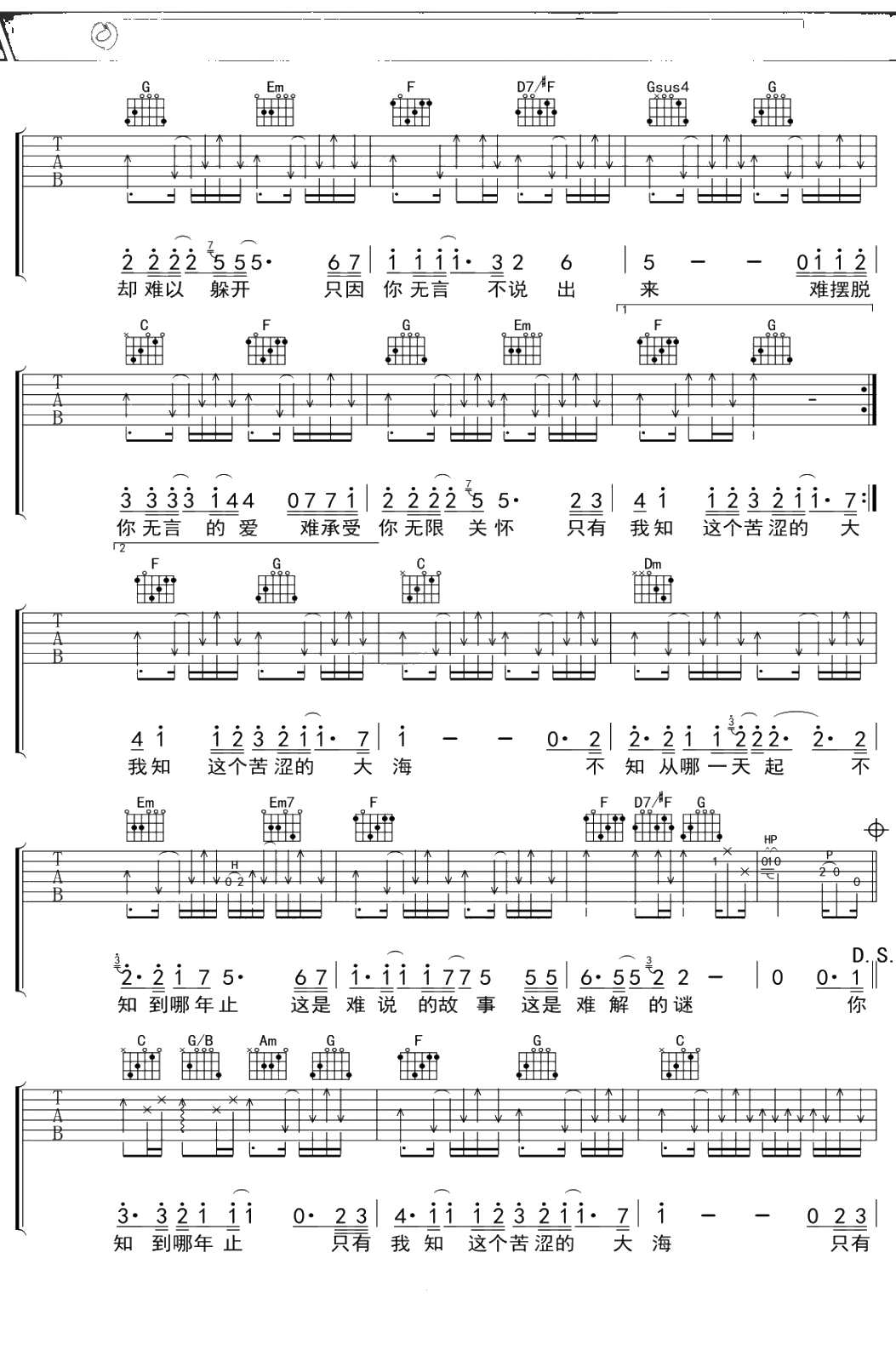 孙国庆《无言》吉他谱 C调弹唱六线谱吉他谱