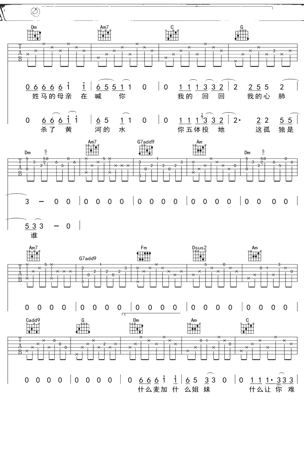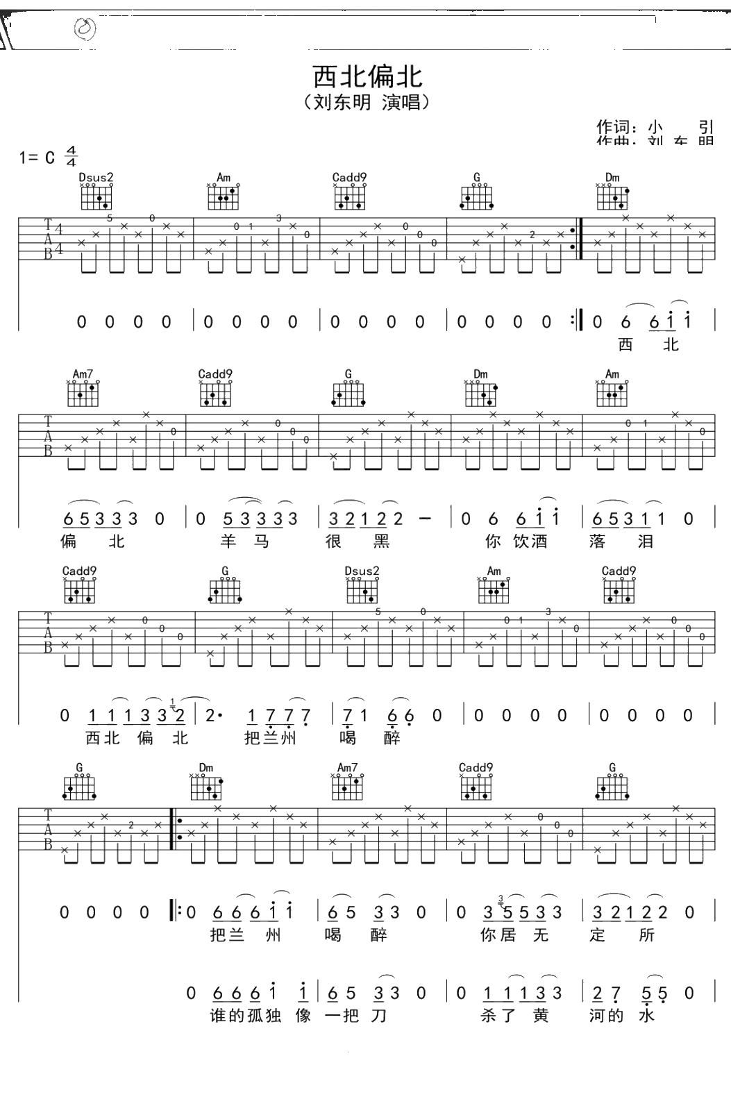 刘东明《西北偏北》吉他谱 C调弹唱六线谱吉他谱