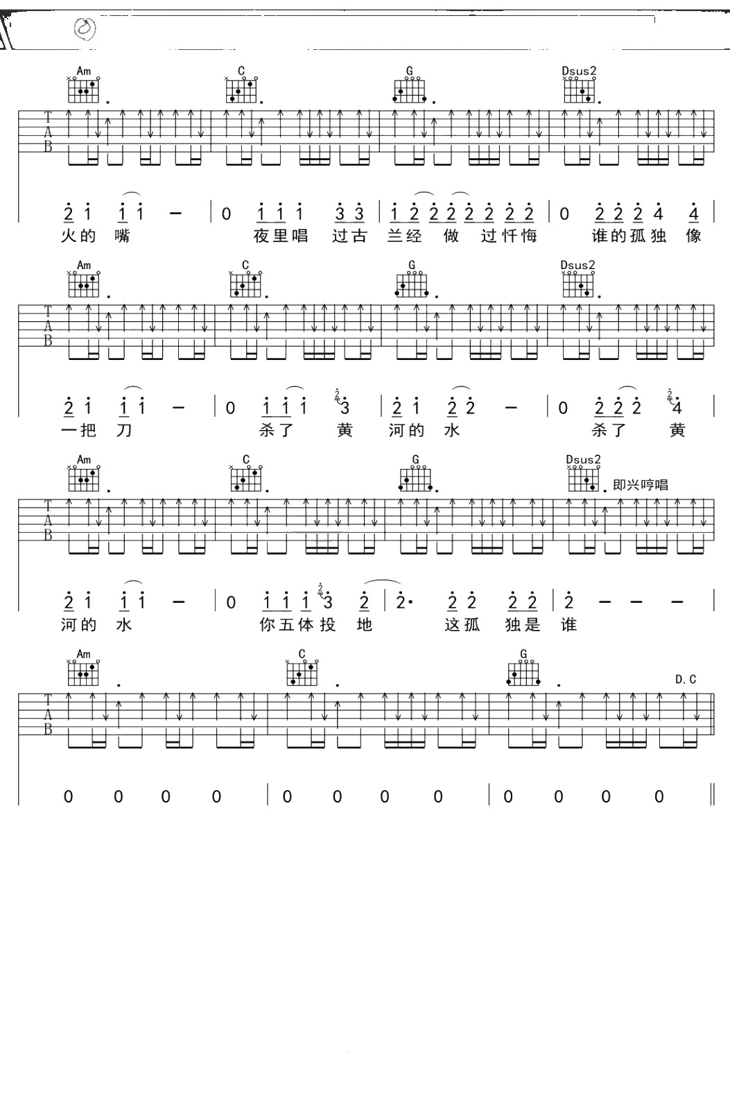 刘东明《西北偏北》吉他谱 C调弹唱六线谱