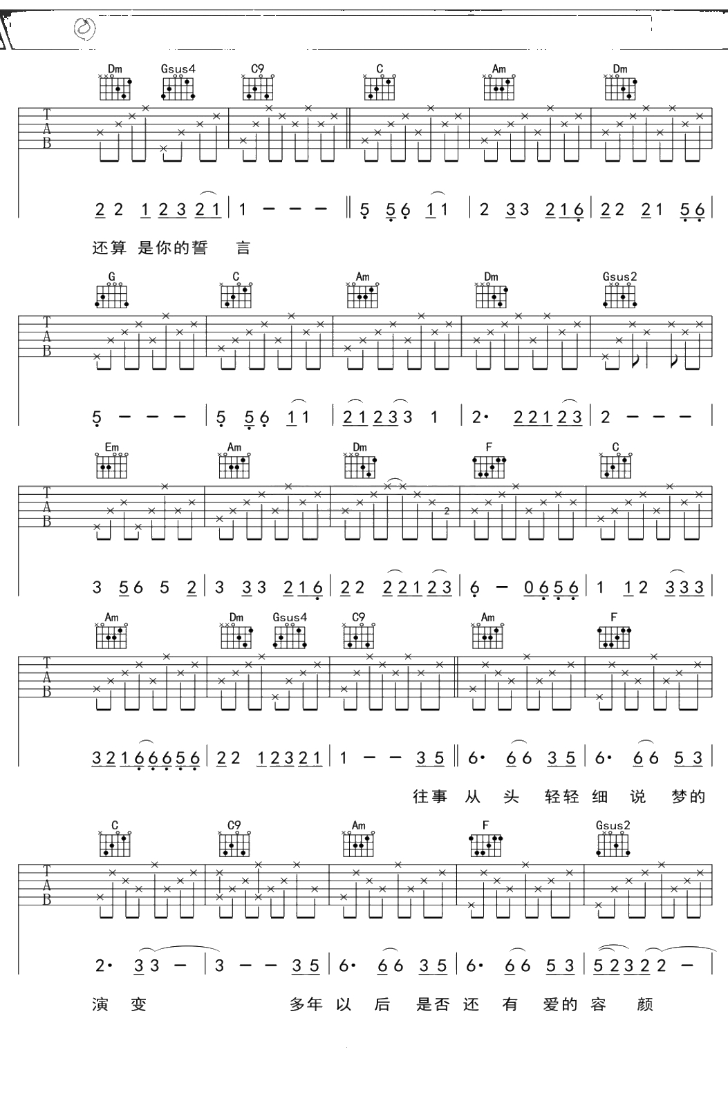 记得吉他谱