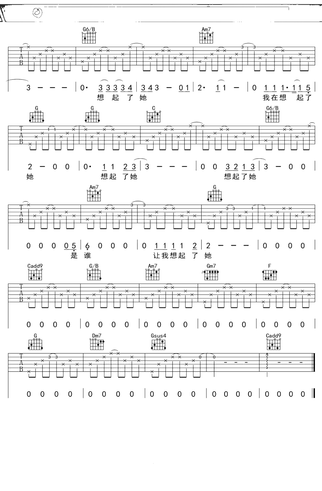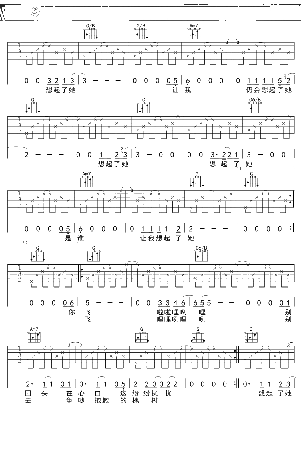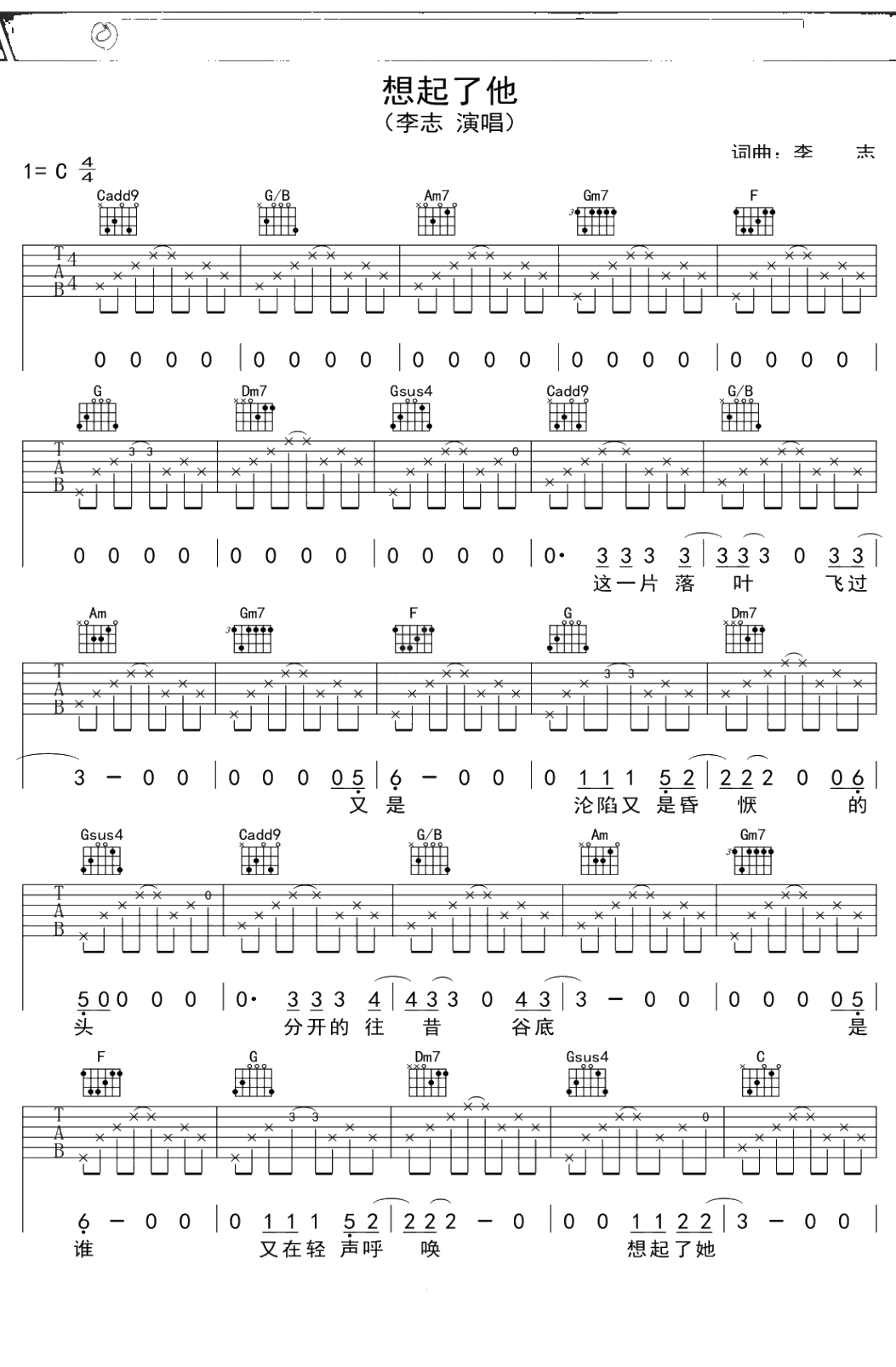 李志《想起了他》吉他谱 C调弹唱六线谱