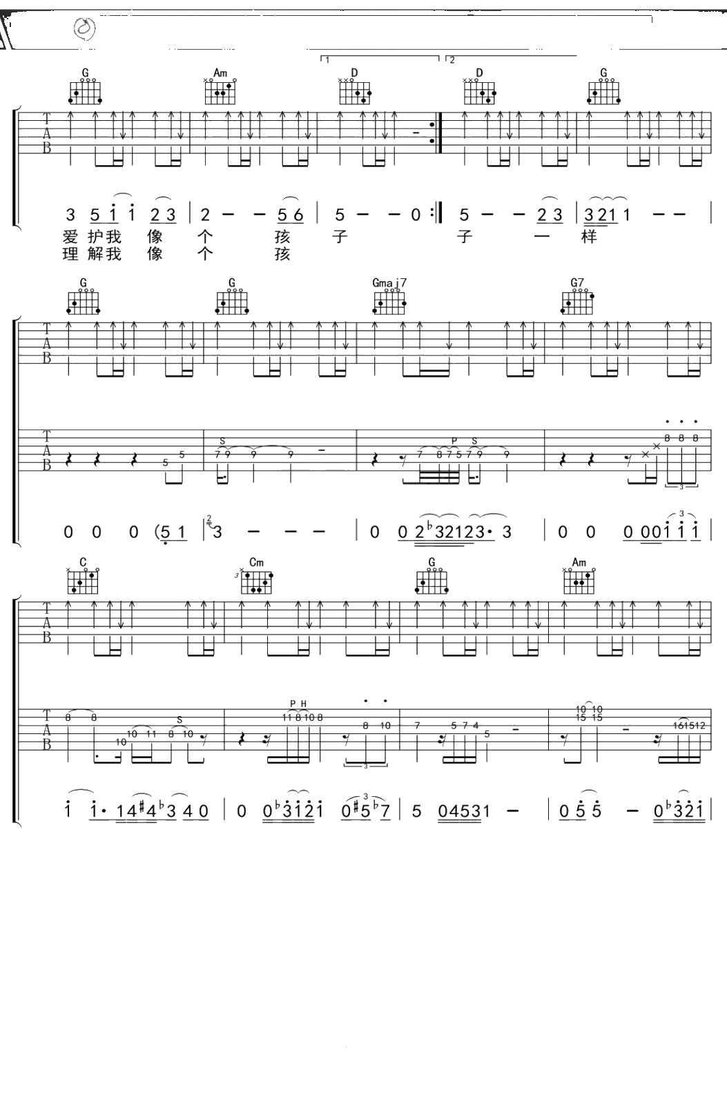 汪峰《像个孩子》吉他谱 G调弹唱六线谱吉他谱