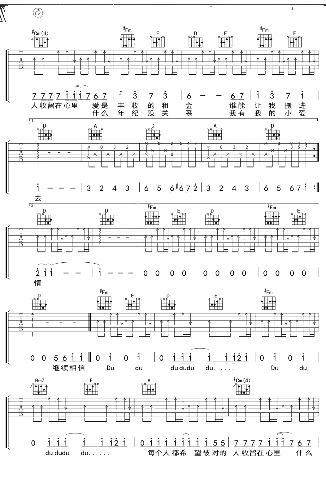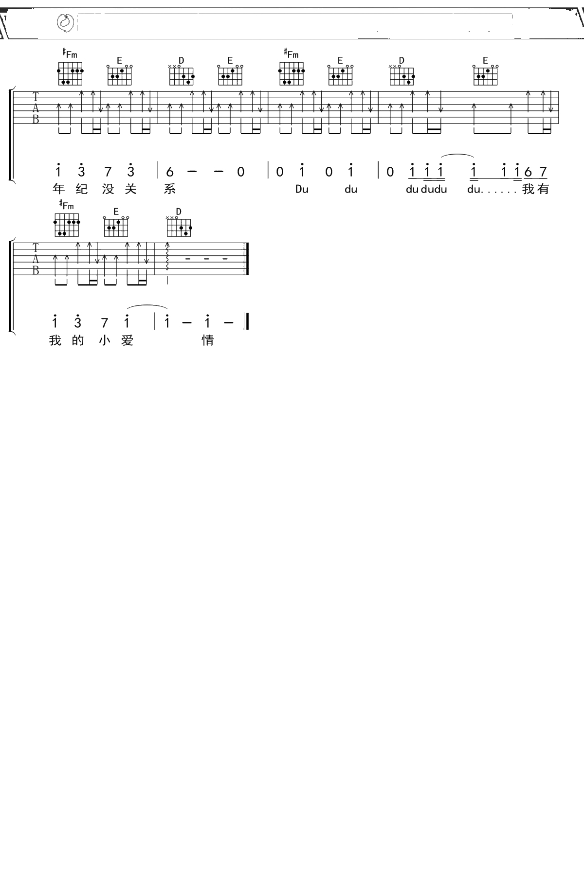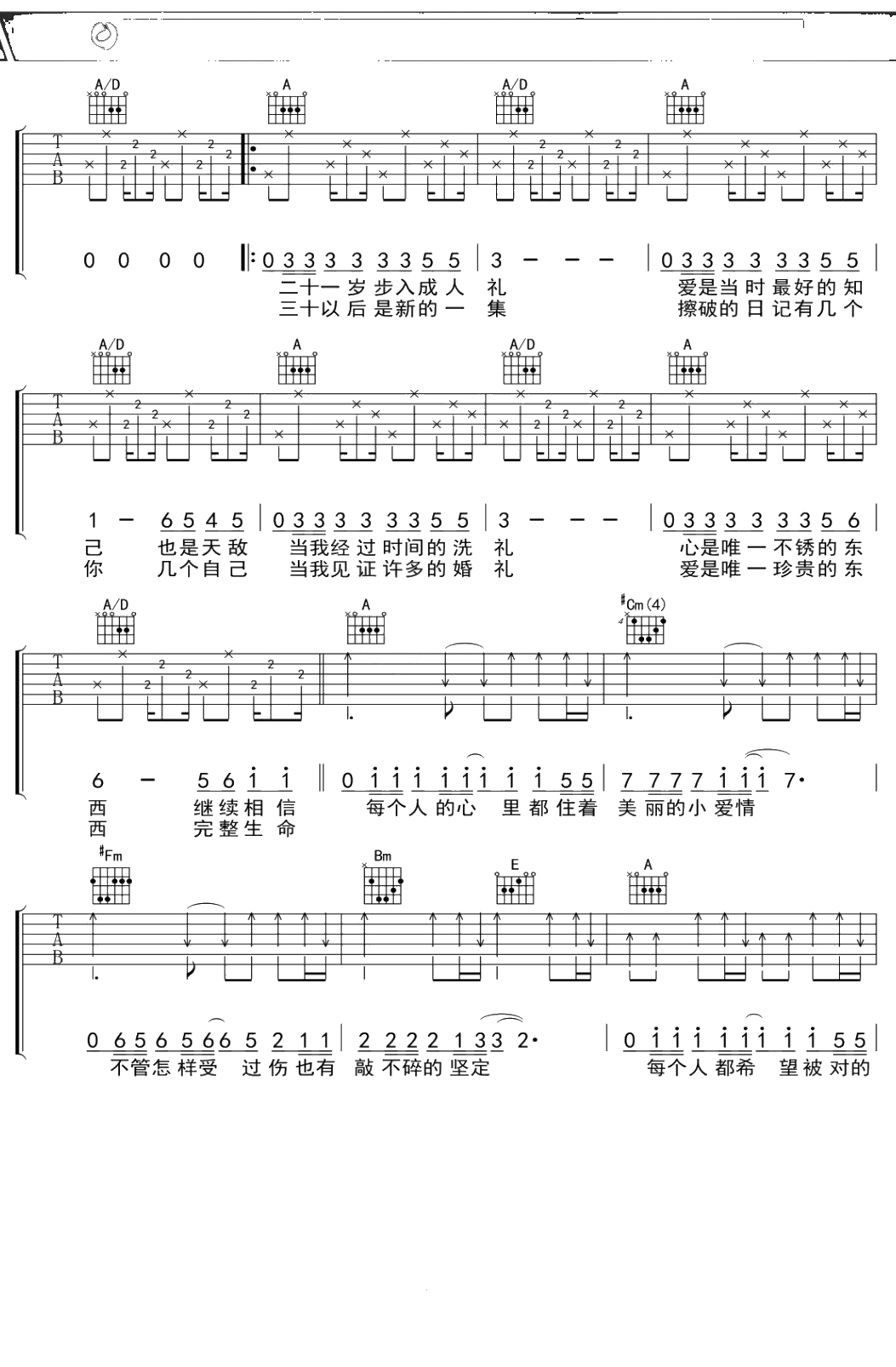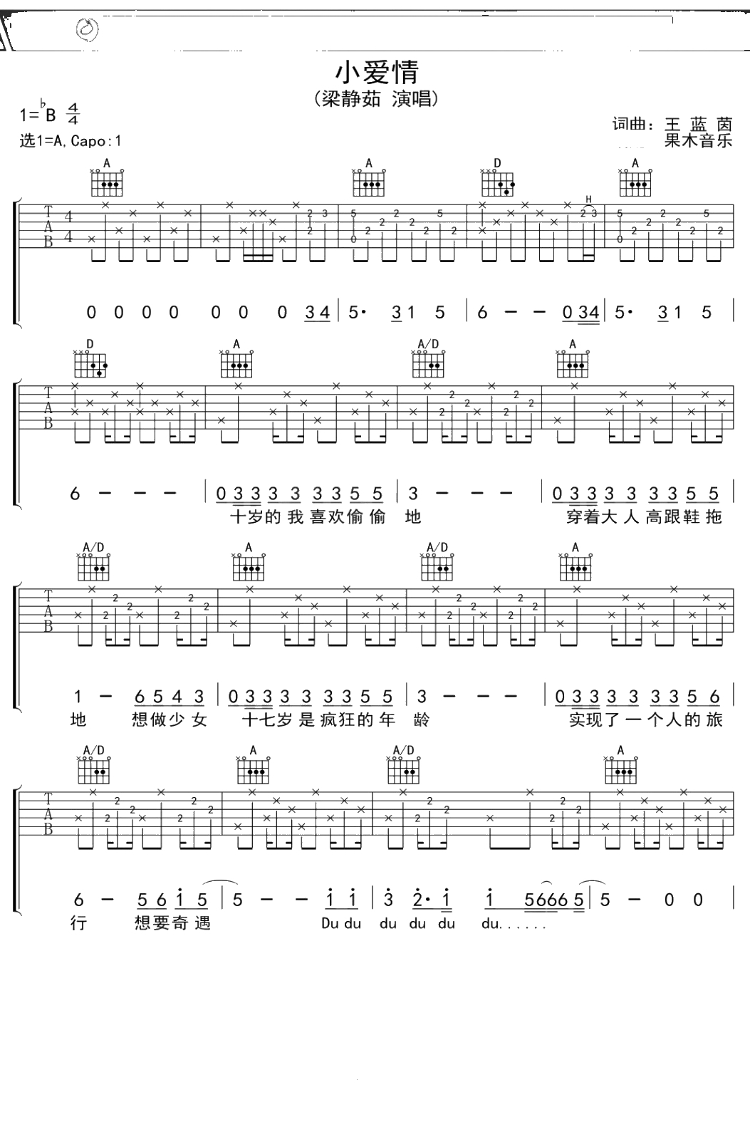 梁静茹《小爱情》吉他谱 A调弹唱六线谱