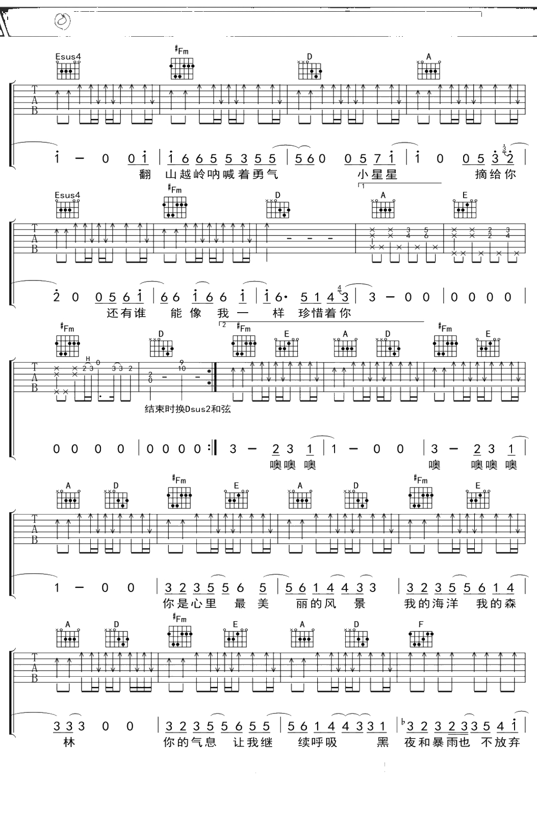 张芸京《小秘密》吉他谱 A调弹唱六线谱