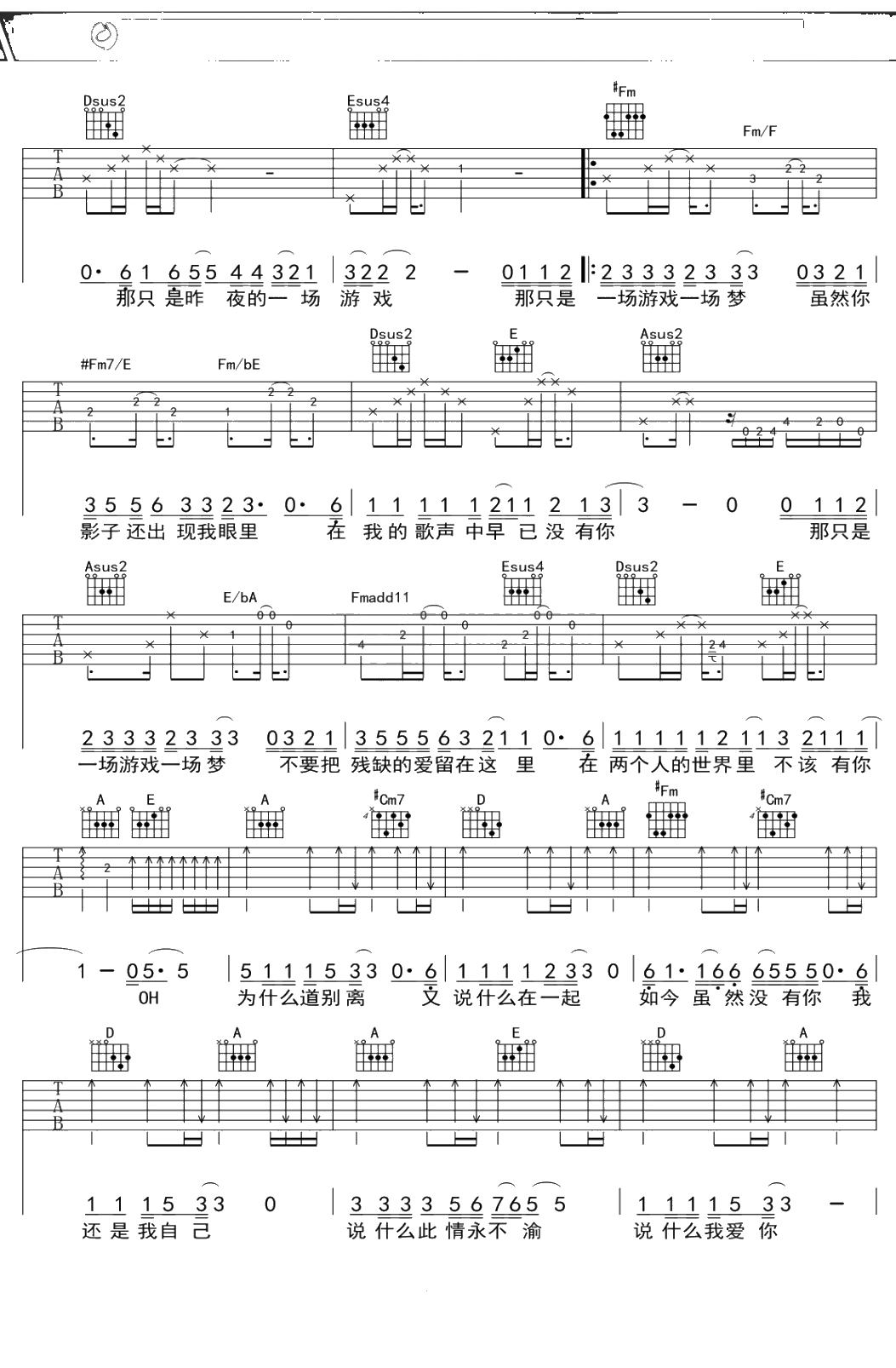王杰《一场游戏一场梦》吉他谱 G调弹唱六线谱吉他谱