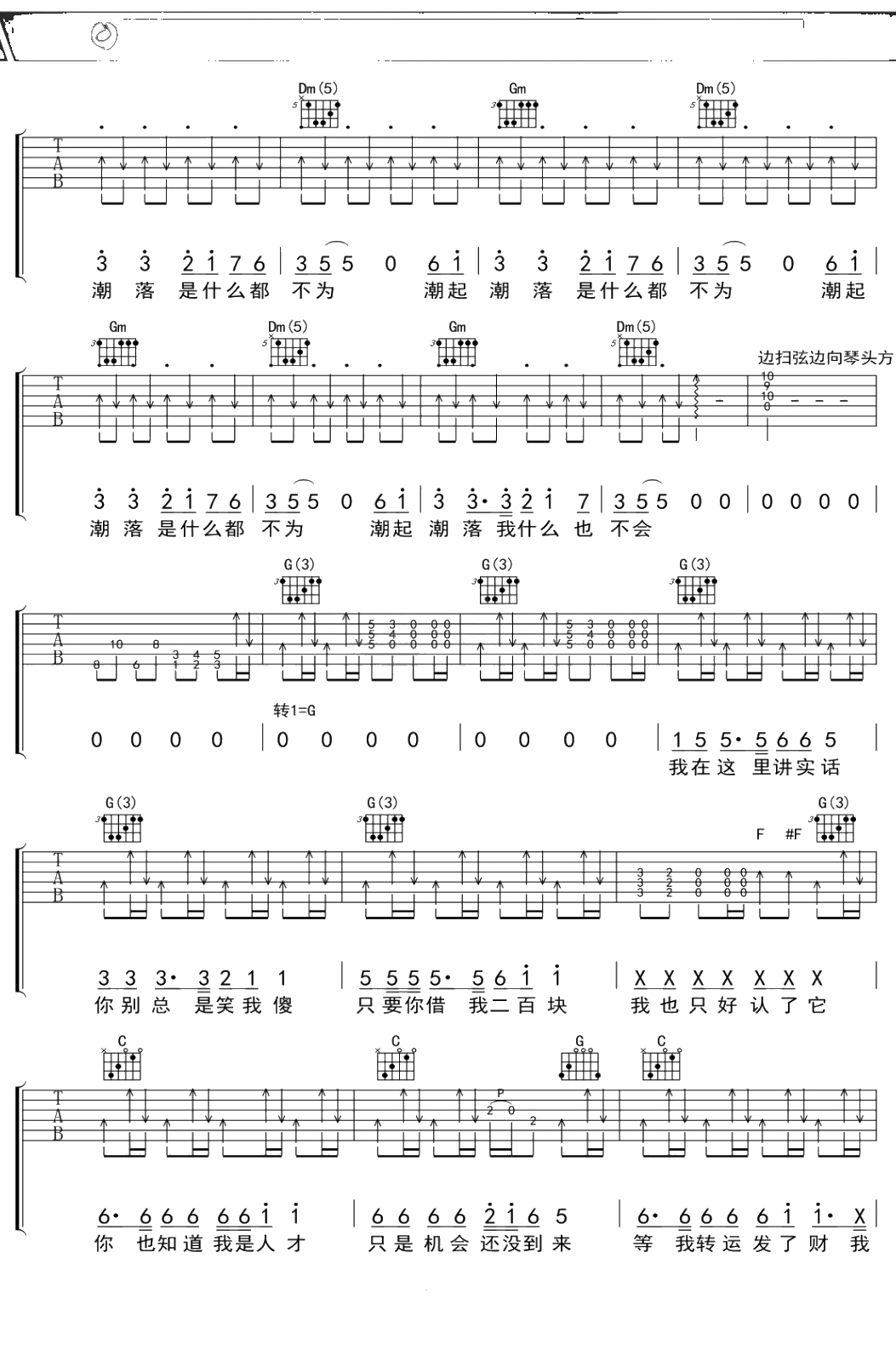 刘东明《一个理想主义者的告白》吉他谱 G调弹唱六线谱吉他谱