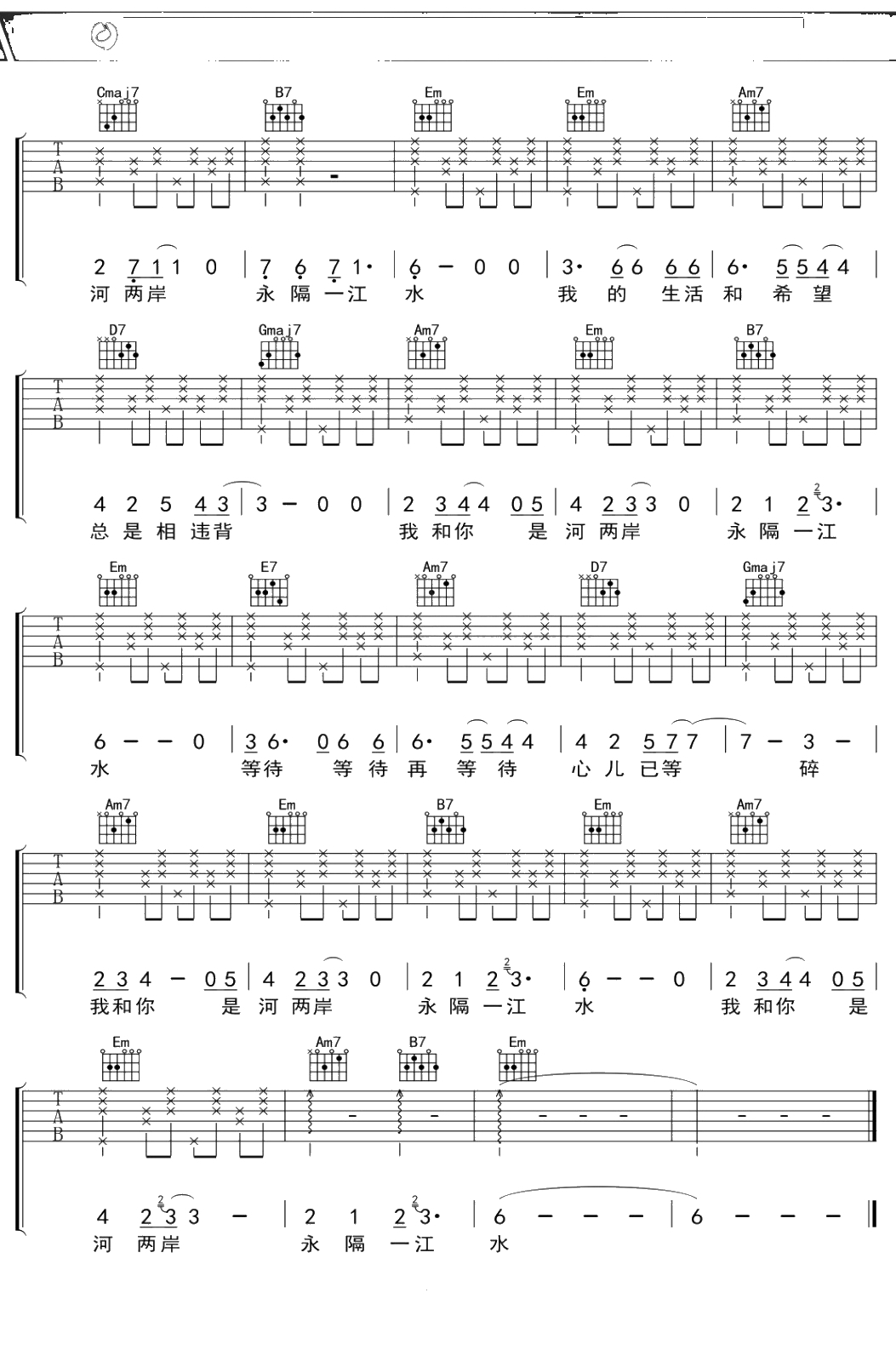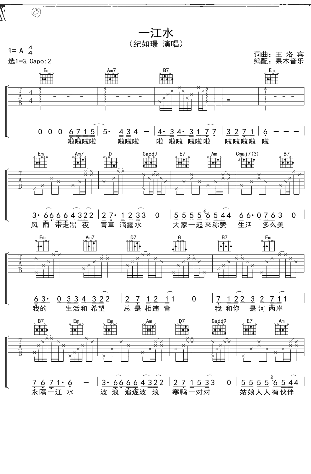 纪如璟《一江水》吉他谱 G调弹唱六线谱吉他谱