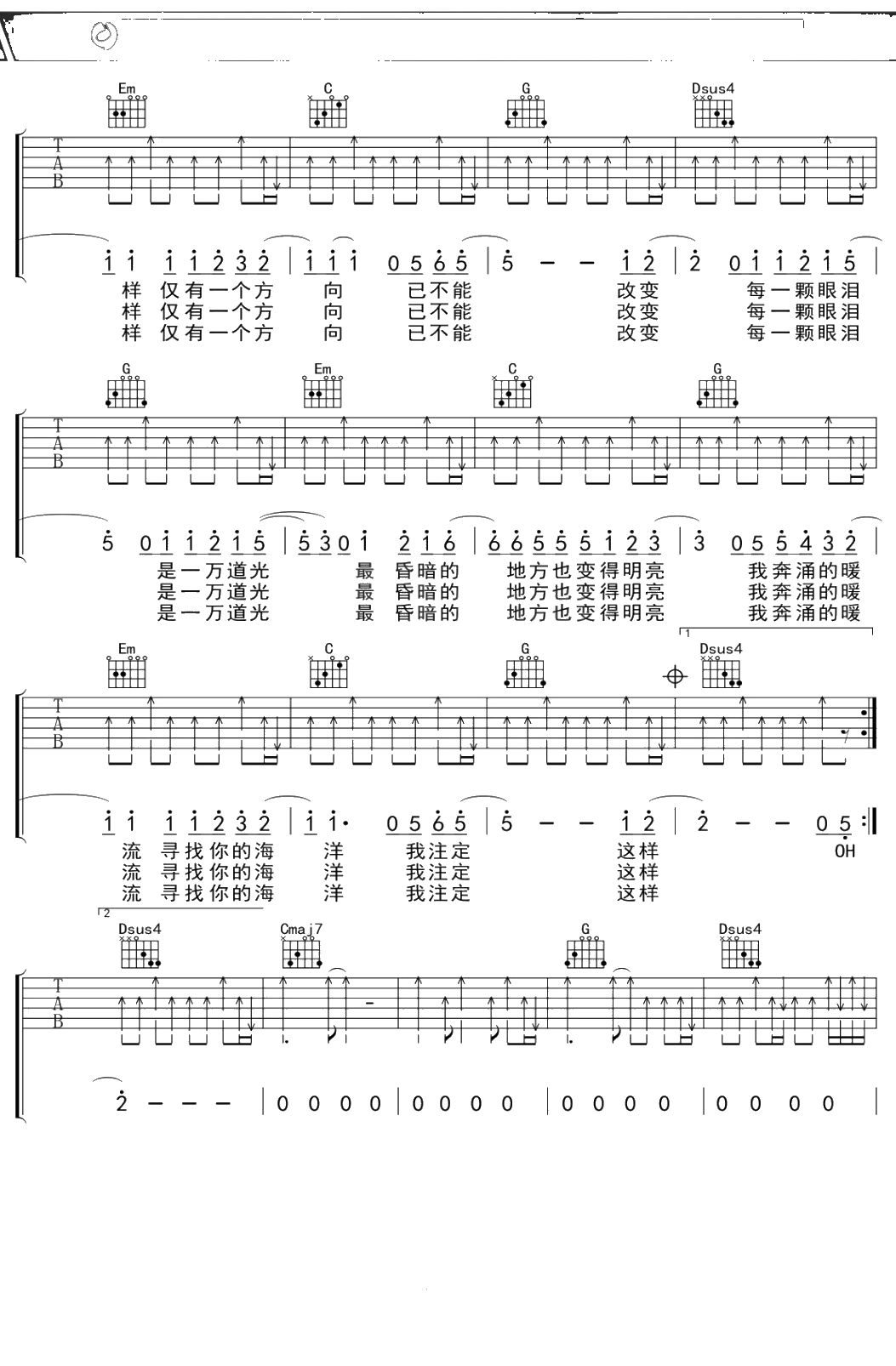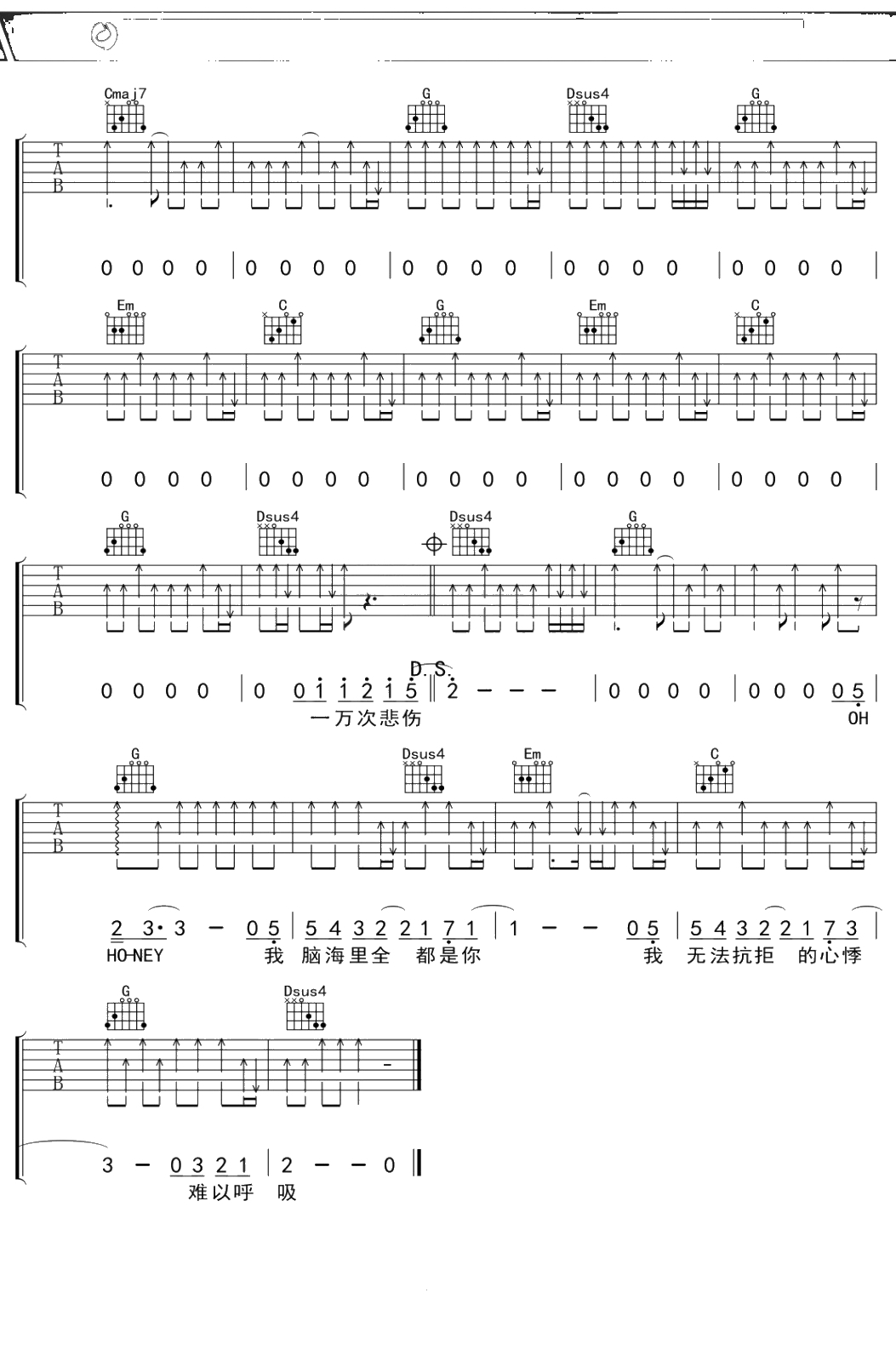 逃跑计划《一万次悲伤》吉他谱 G调弹唱六线谱