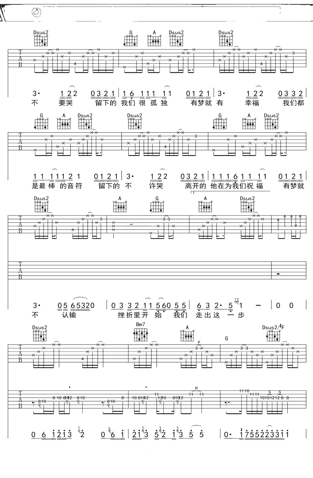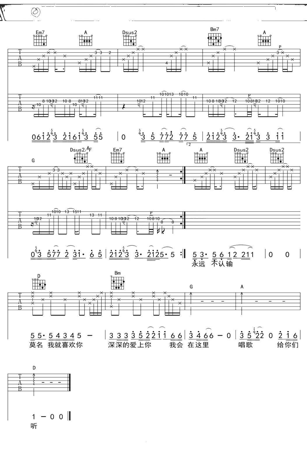 山野《有梦就不认输》吉他谱 D调弹唱六线谱吉他谱