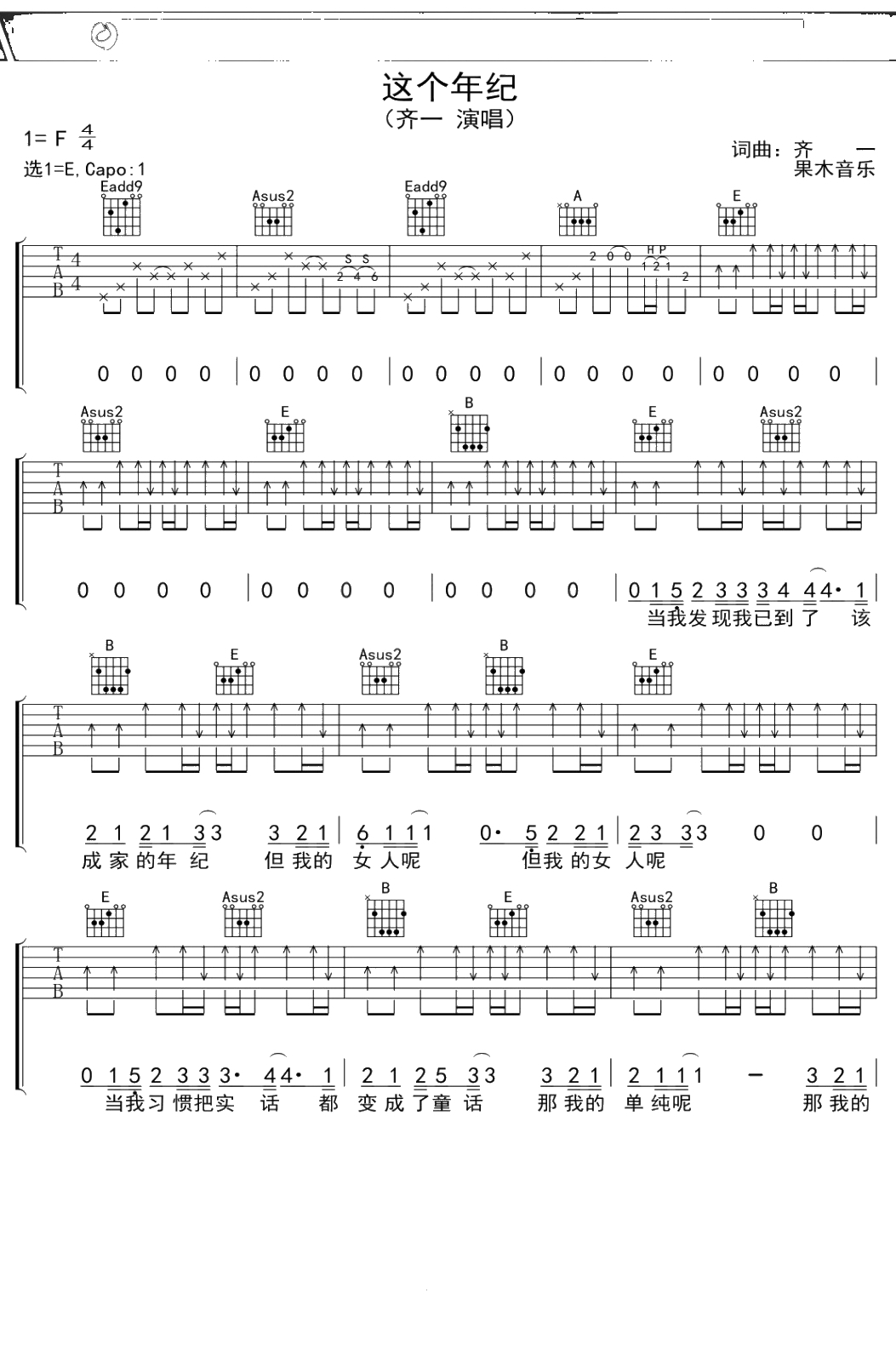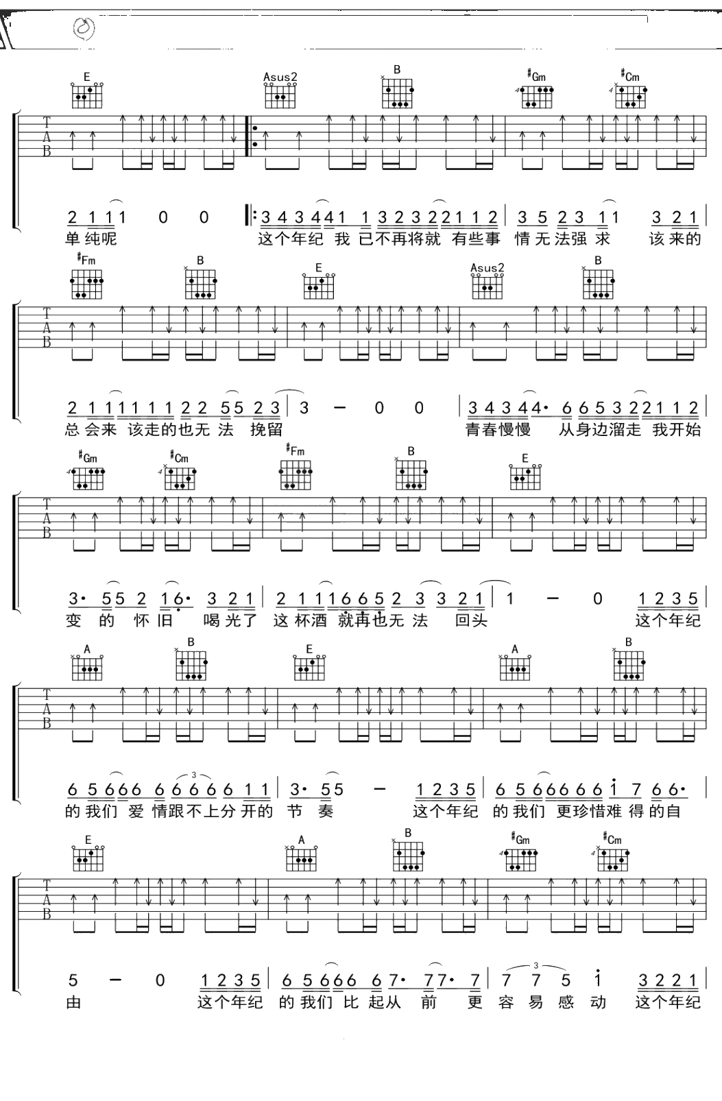 齐一《这个年纪》吉他谱 E调弹唱六线谱吉他谱